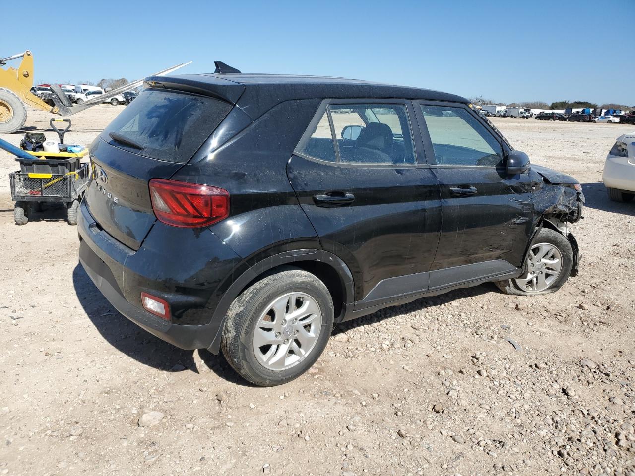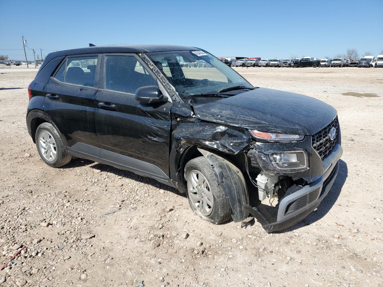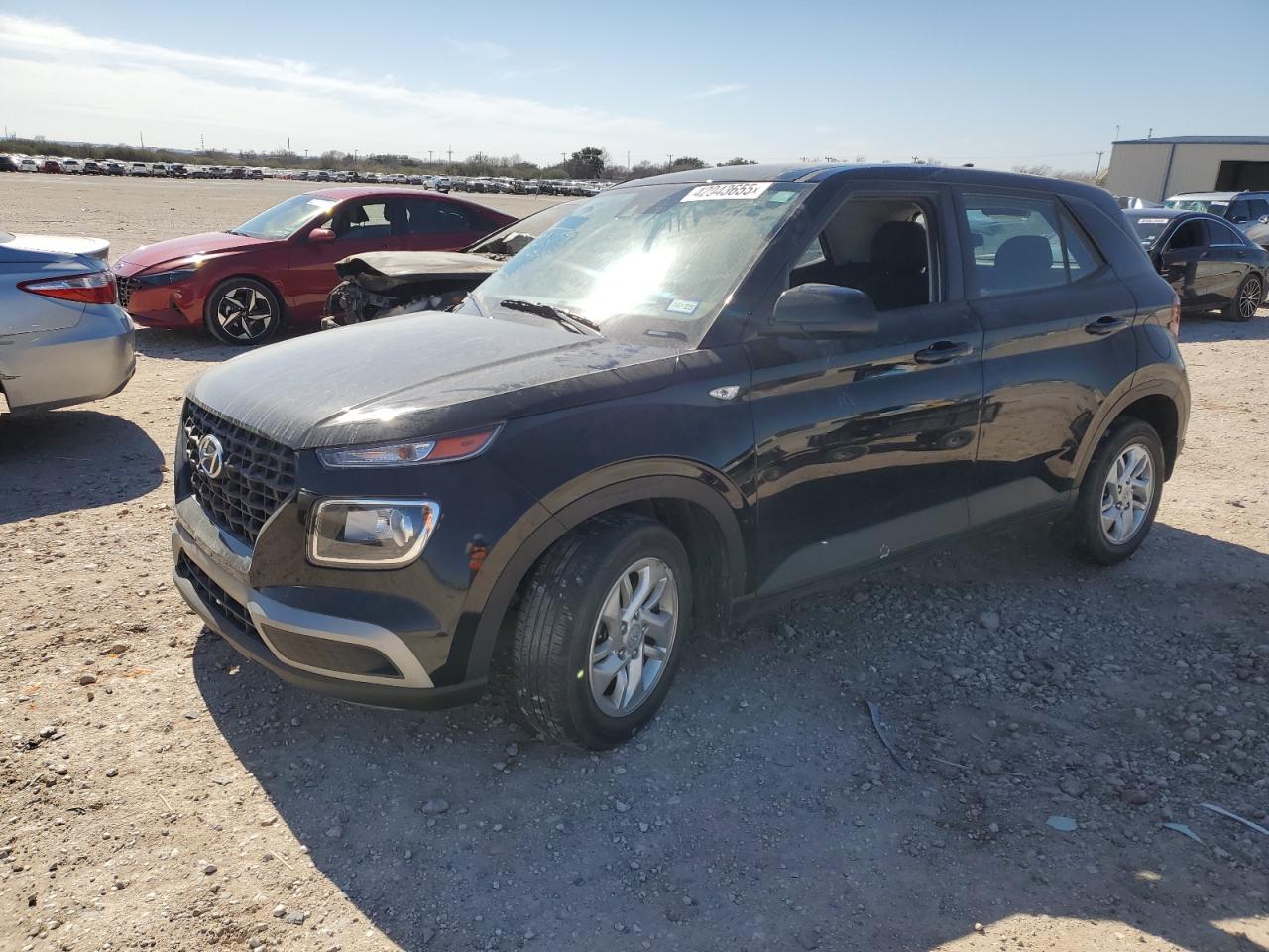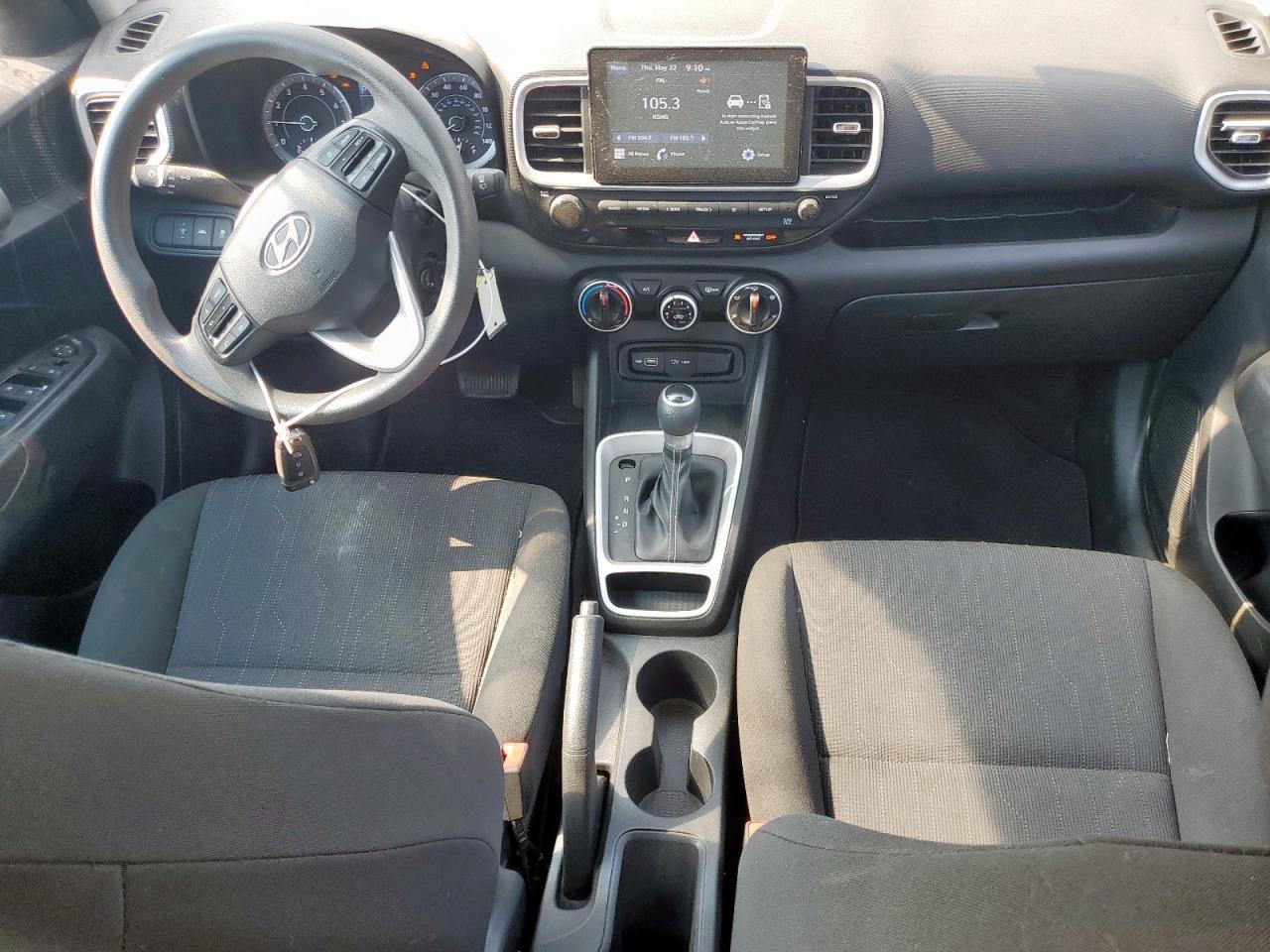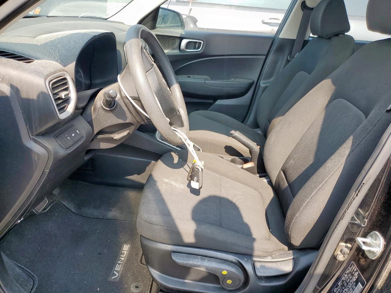 FairThis is a black 2022 Hyundai Venue SE. It has front-end and side damage, indicated by the visible damage to the front and side body panels. The car is a Run & Drive, verified start. The interior appears to be in good condition with moderate wear and tear.