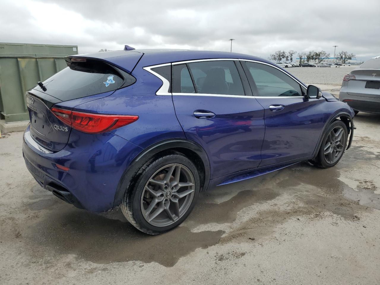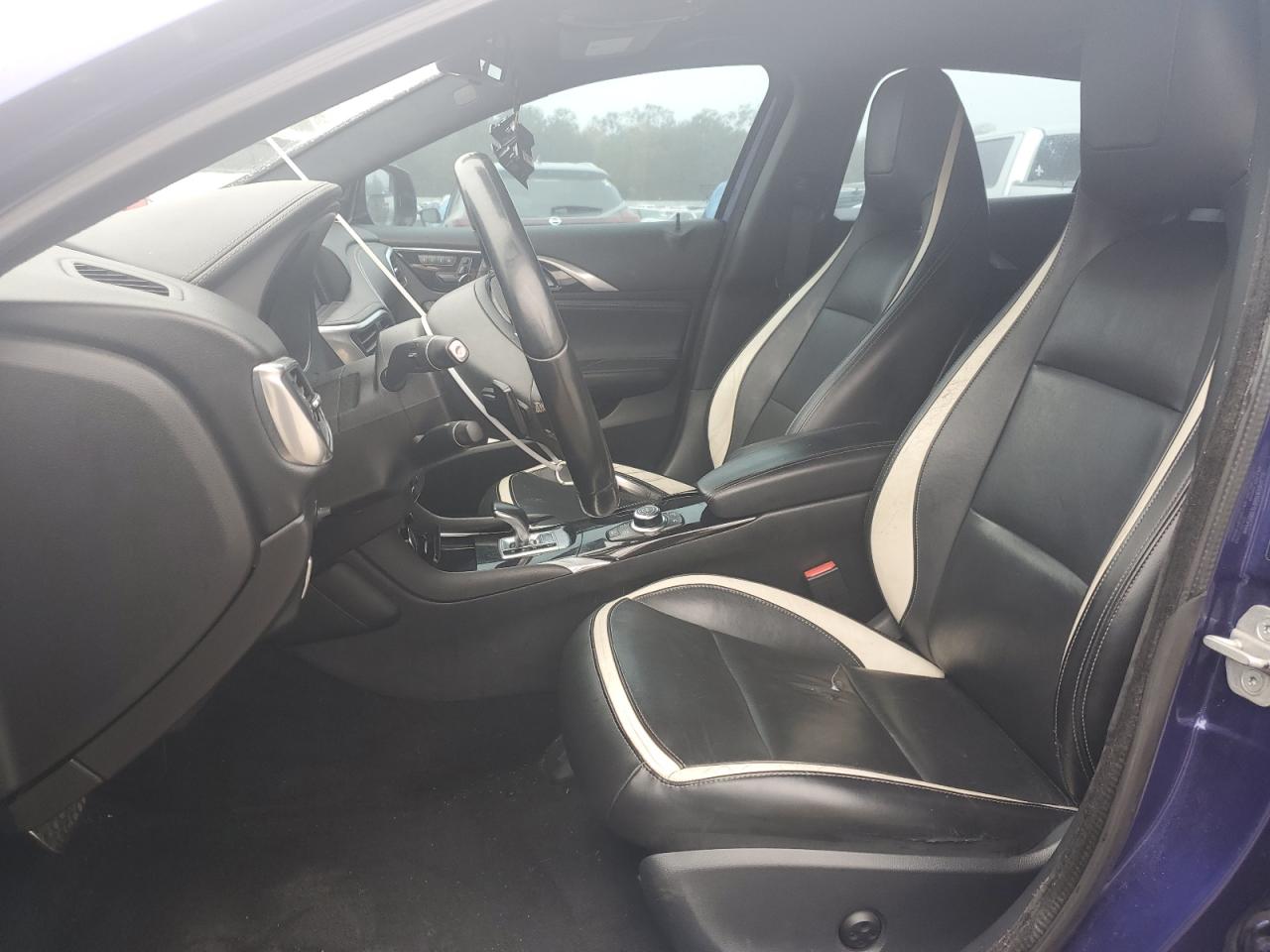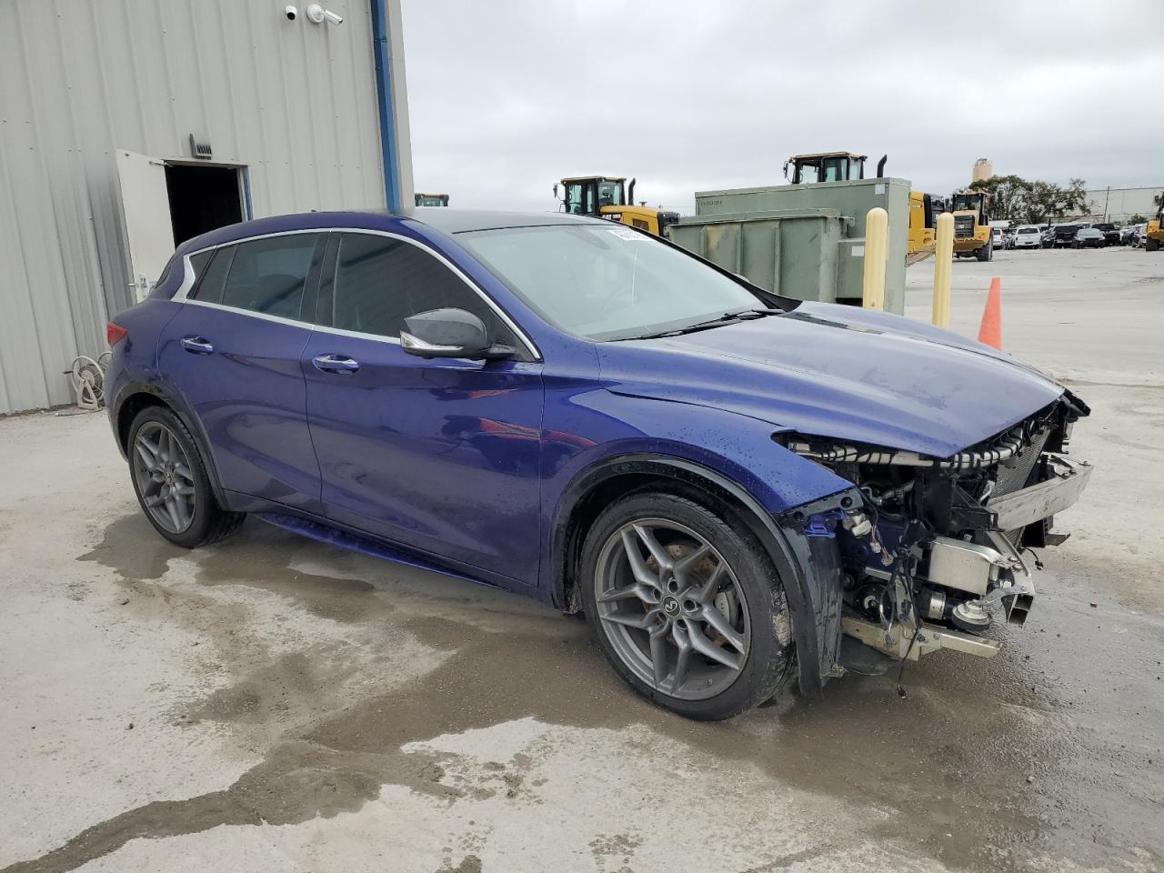 FairThe INFINITI QX30 BASE 2017 is presented with significant front-end damage. The vehicle's blue exterior shows considerable impact, particularly around the front, with apparent damage to the bumper, fenders, and potentially the lights. Despite the front-end damage, the interior appears to be in relatively good condition with minimal wear and tear, suggesting the impact was concentrated on the front.