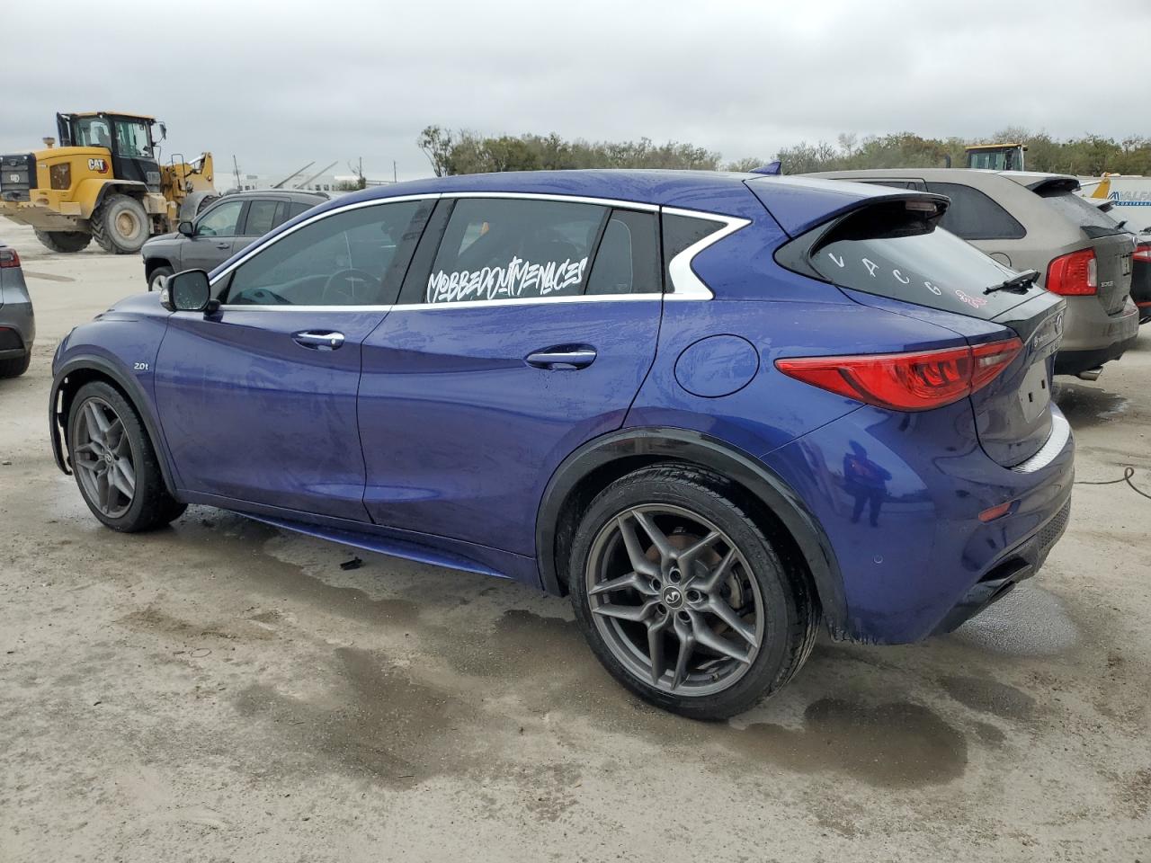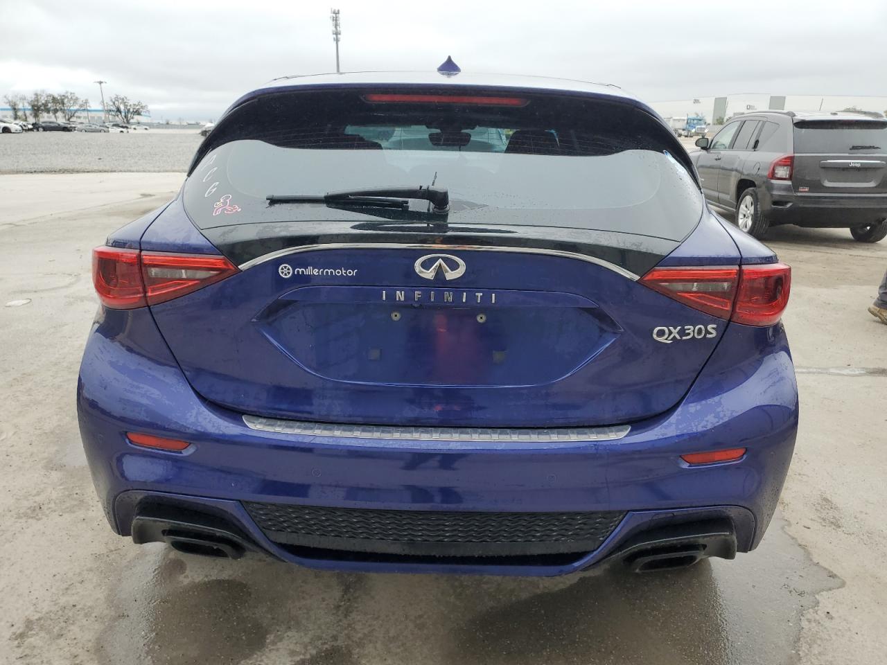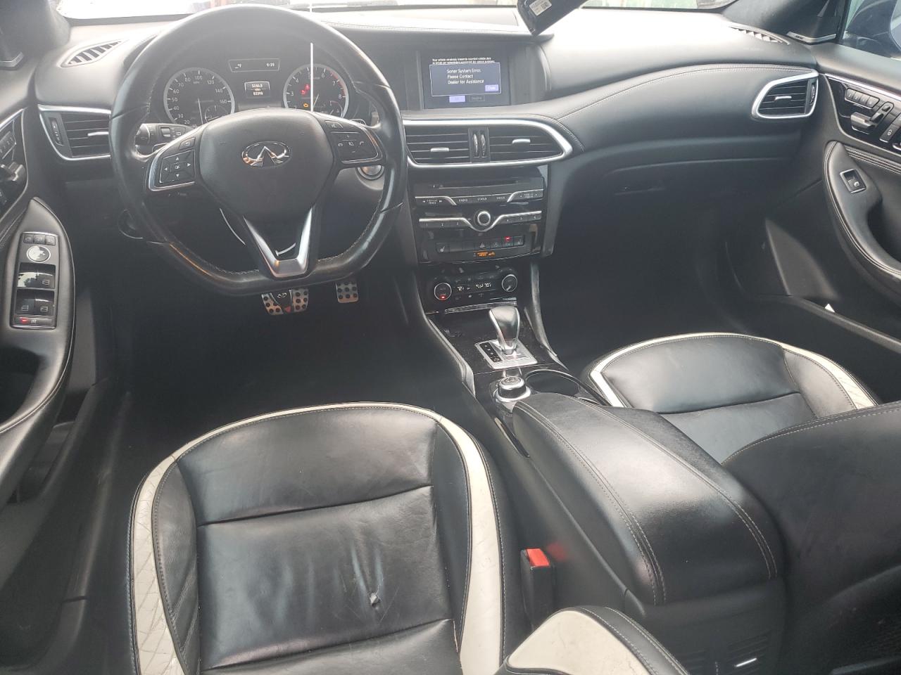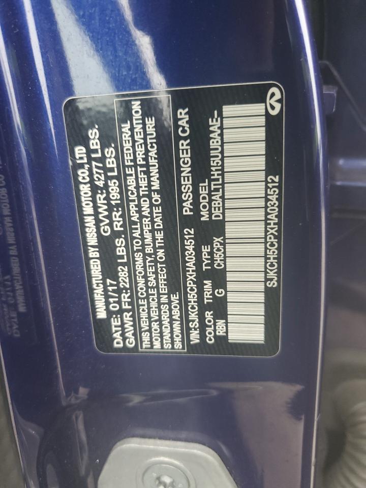FairThe INFINITI QX30 BASE 2017 is presented with significant front-end damage. The vehicle's blue exterior shows considerable impact, particularly around the front, with apparent damage to the bumper, fenders, and potentially the lights. Despite the front-end damage, the interior appears to be in relatively good condition with minimal wear and tear, suggesting the impact was concentrated on the front.