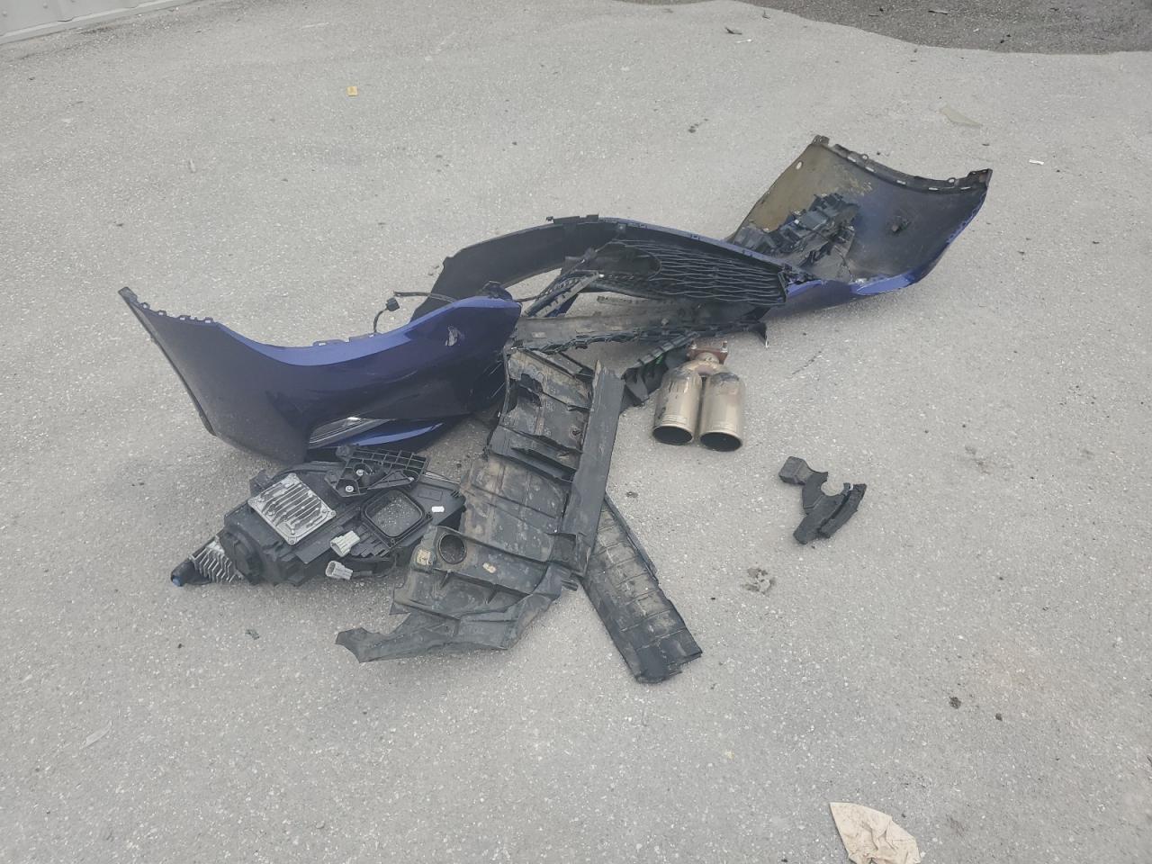 Front-end damage, including bumper, fenders, and potential light damage. Overall, the vehicle has signs of damage consistent with a collision.