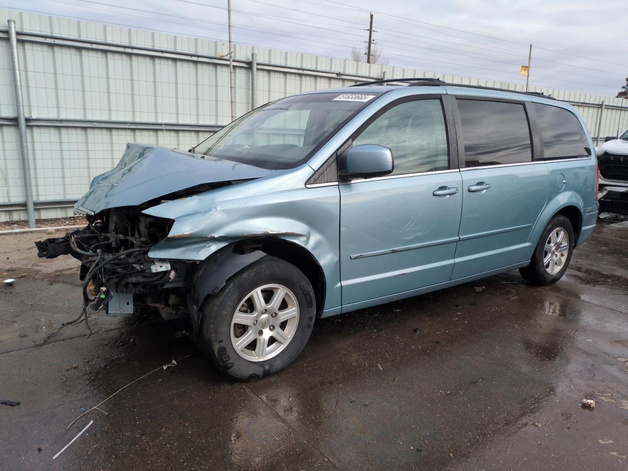 FairThe 2008 Chrysler Town & Country minivan, showcases significant front-end damage, compromising the front body panels. The vehicle is blue and appears to have some damage to the front bumper, lights, and possibly the hood, impacting its overall aesthetic. The interior presents signs of wear and potential airbag deployment. The car starts.