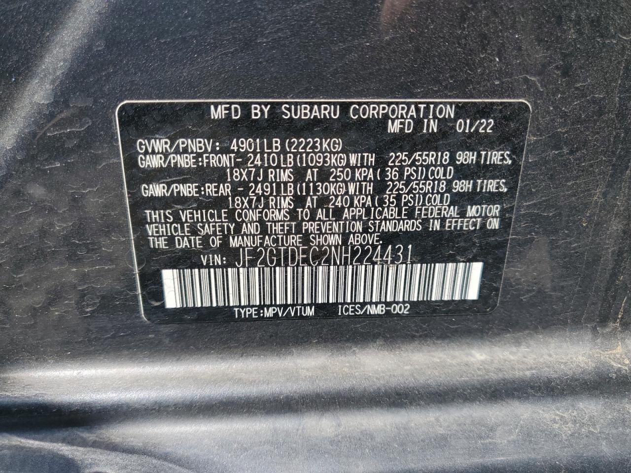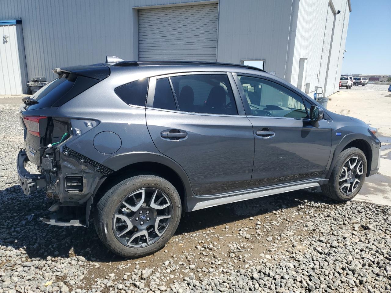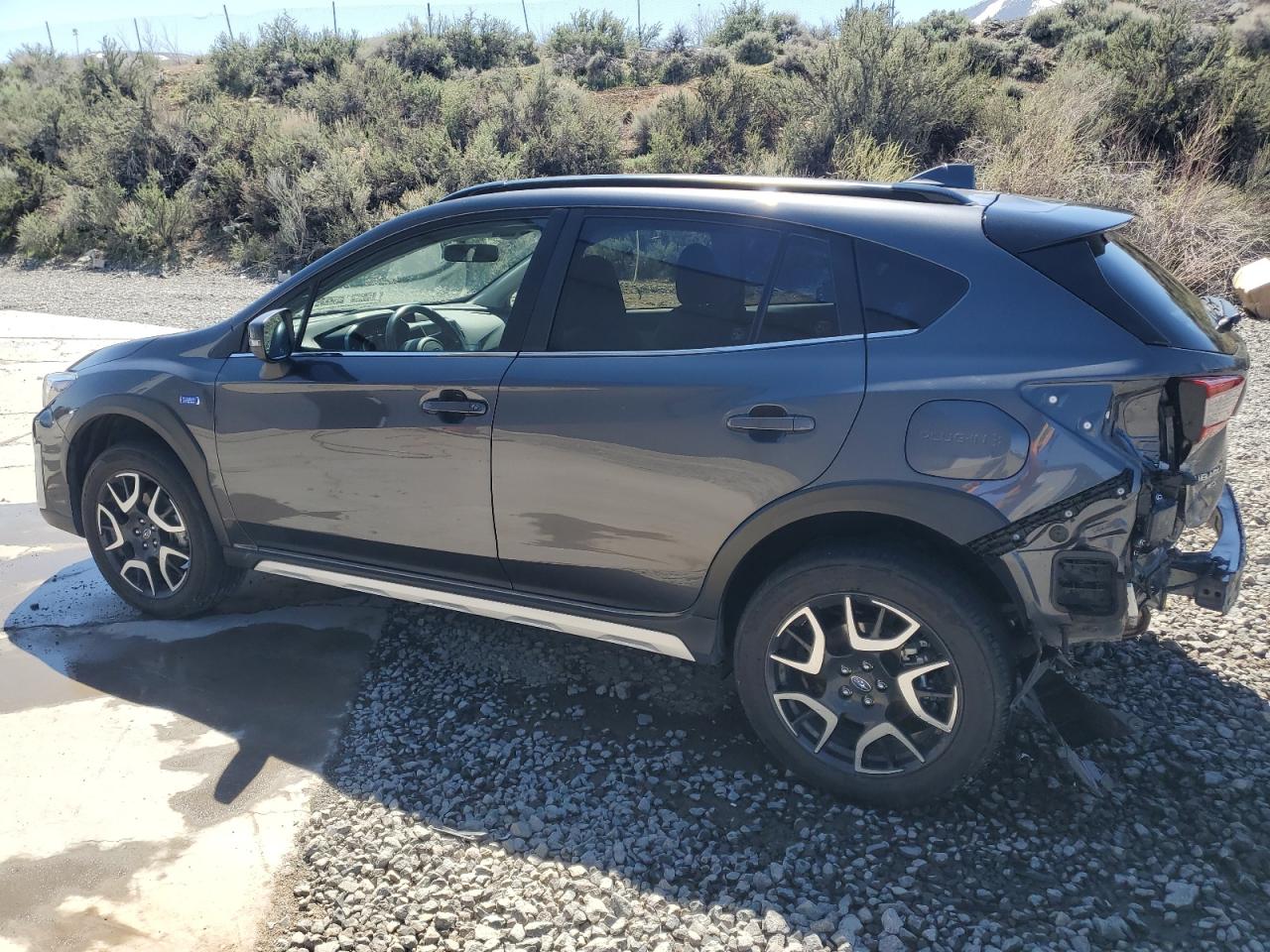 FairSUBARU CROSSTREK 2022, gray in color, experienced REAR END damage. The car is currently drivable with visible damage to the rear body panels. The interior presents minor wear and tear.