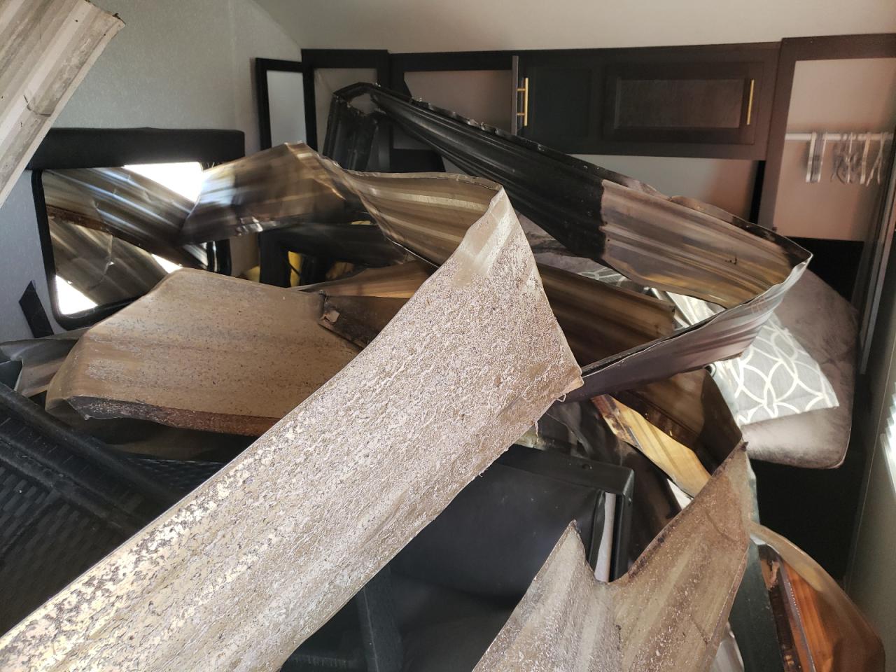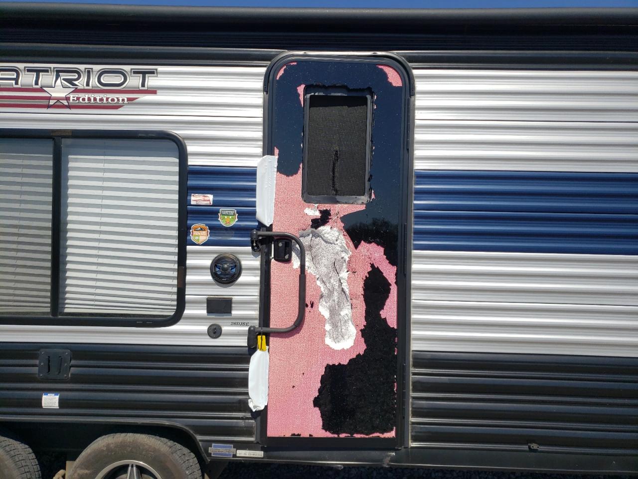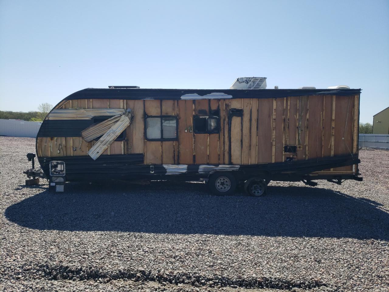 PoorThe WILDWOOD PATRIOT 2022 shows significant damage, primarily from a fire. The exterior is severely burned, with extensive charring to the body panels. The wheels are damaged and the overall structural integrity is compromised. The interior also shows signs of fire damage with the interior elements heavily damaged.