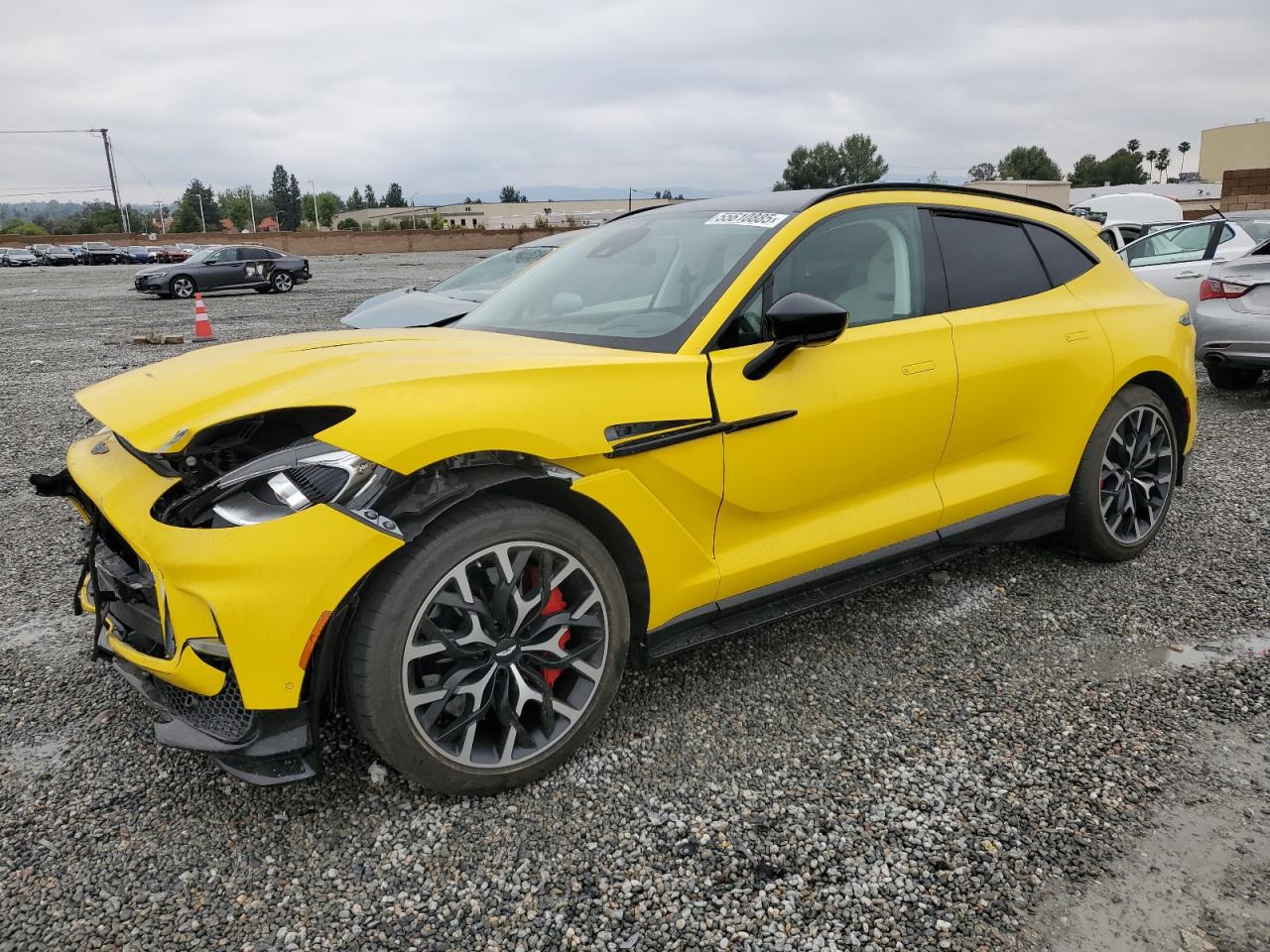 FairThe 2023 Aston Martin DBX 707 is a high-performance luxury SUV with a striking yellow exterior. This particular vehicle has sustained significant front-end damage, indicating a prior collision. Despite the visible damage, the interior appears to be in good condition, with minimal wear and tear. The car's wheels and glass components seem intact, while the lights may have sustained damage due to the collision. The vehicle's dashboard displays a mileage of 8837.1 and is equipped with white leather seats. Overall, the car needs repair.