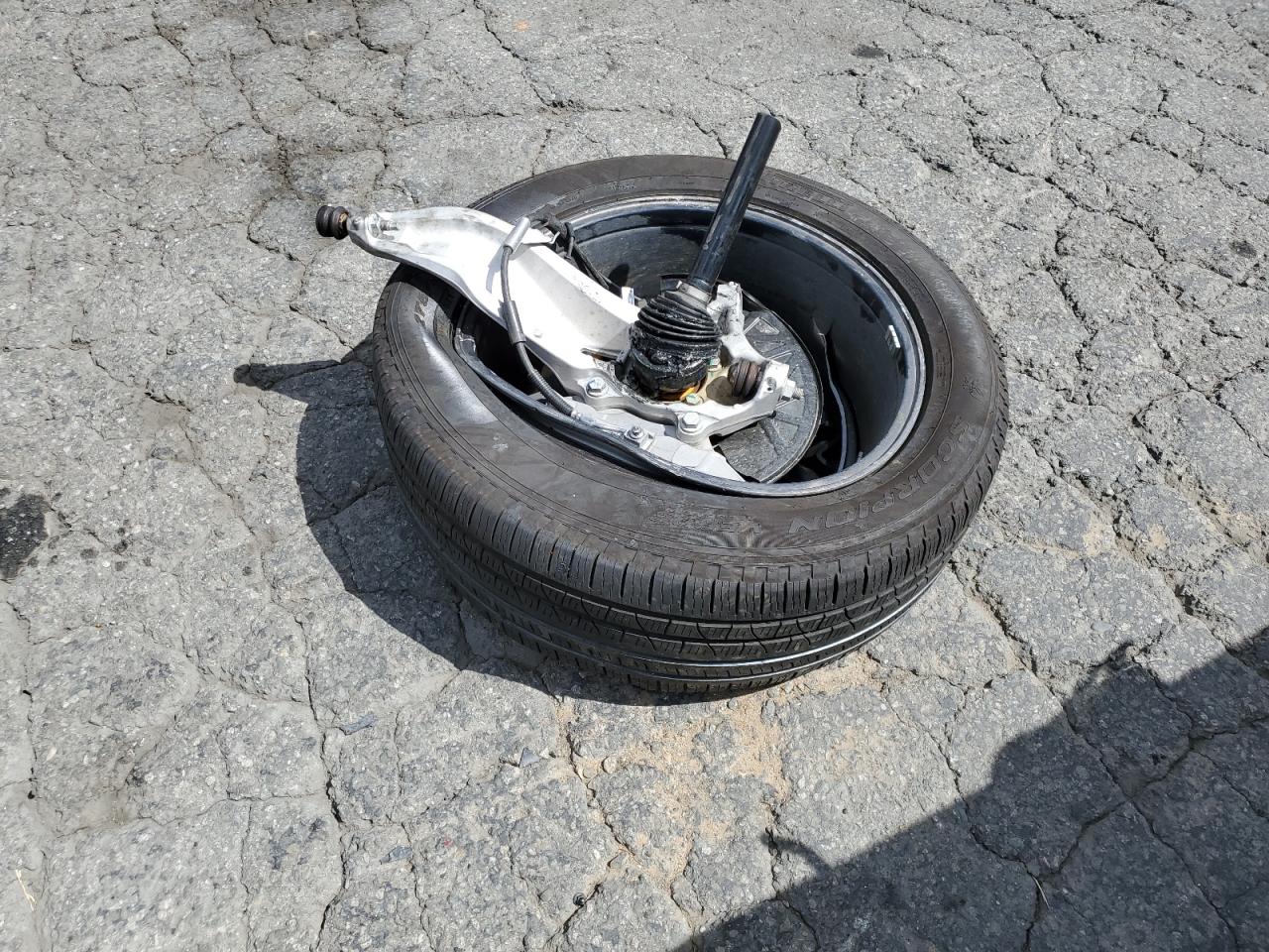 The vehicle shows significant side body damage, indicating a collision. Wheels and lights appear intact.