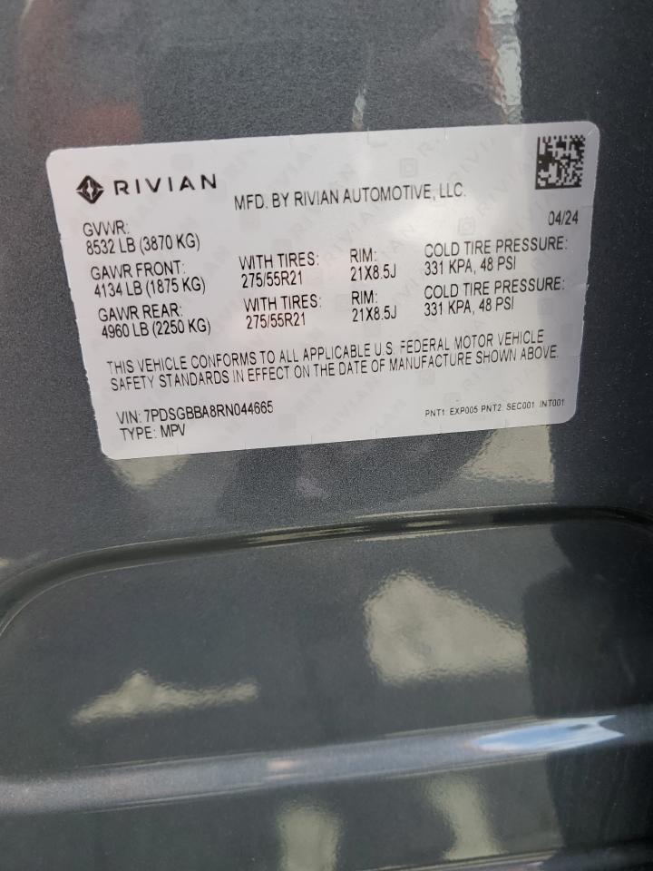 FairThe RIVIAN R1S ADVENT 2024 exhibits body damage to the side, with a color described as blue. Interior appears in a good condition with minor wear and tear. The vehicle's wheels and lights show no significant damage. Overall, the car is drivable but requires body repairs.