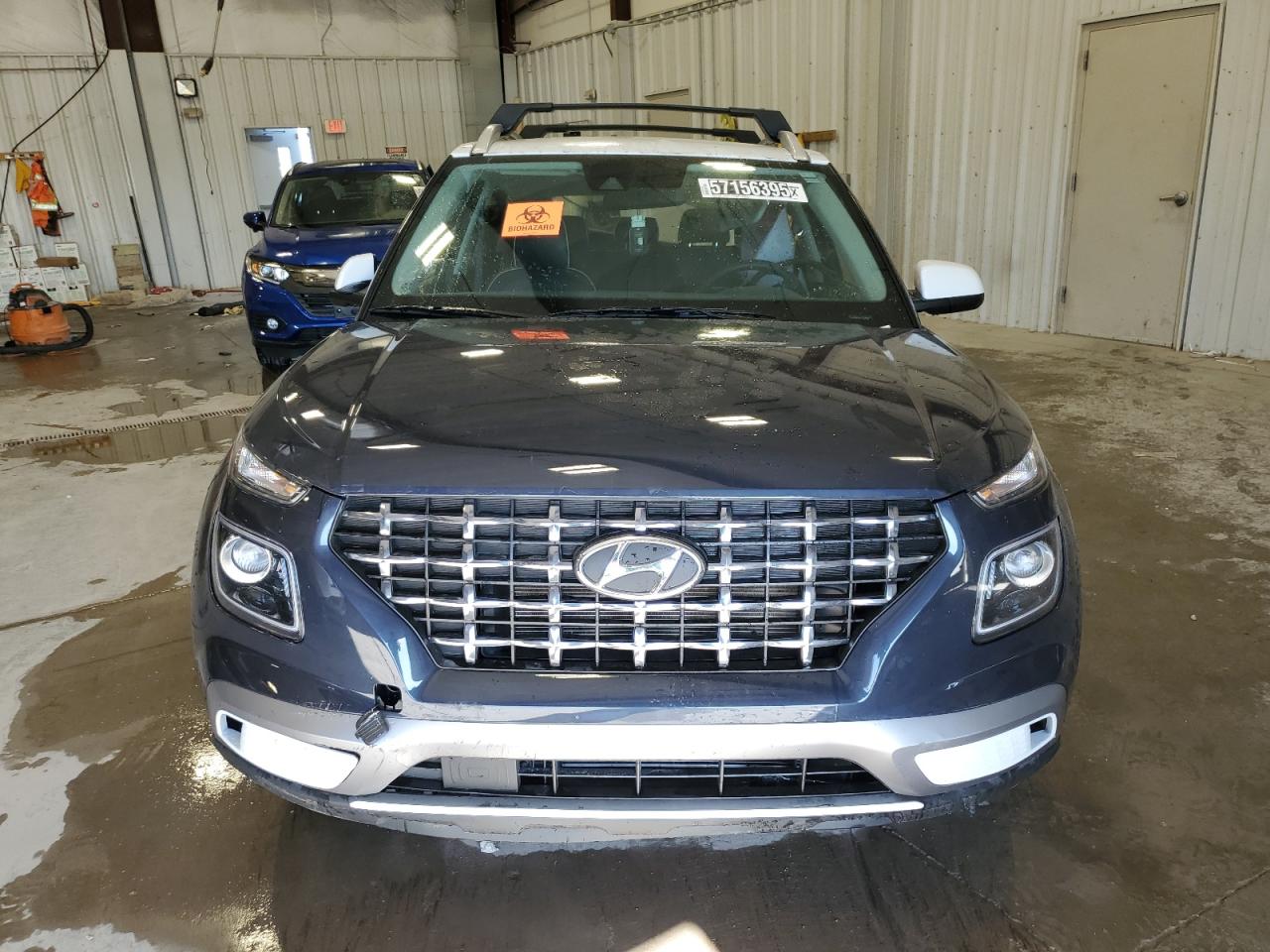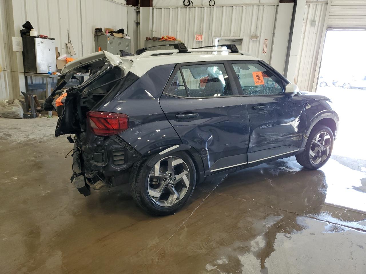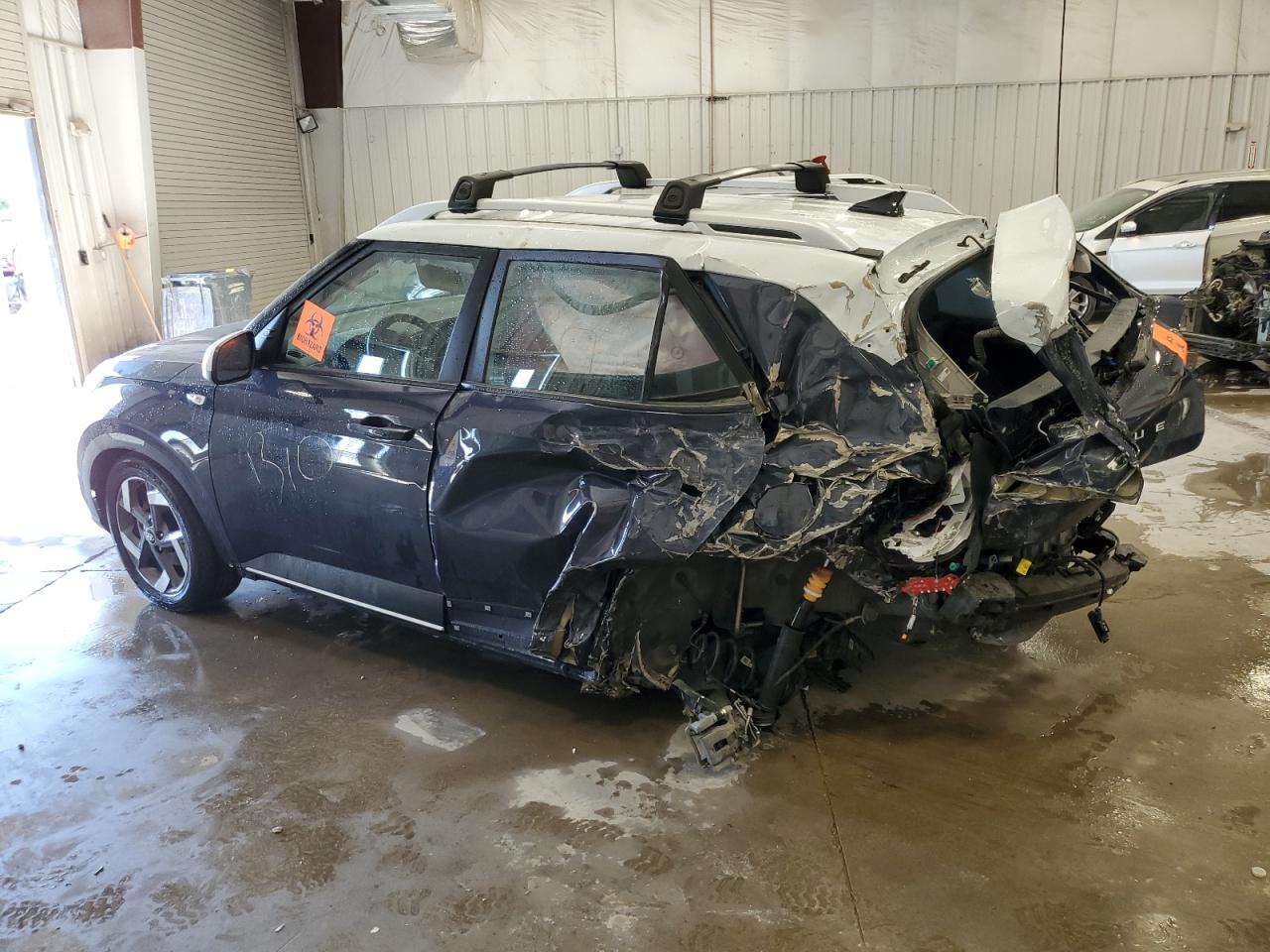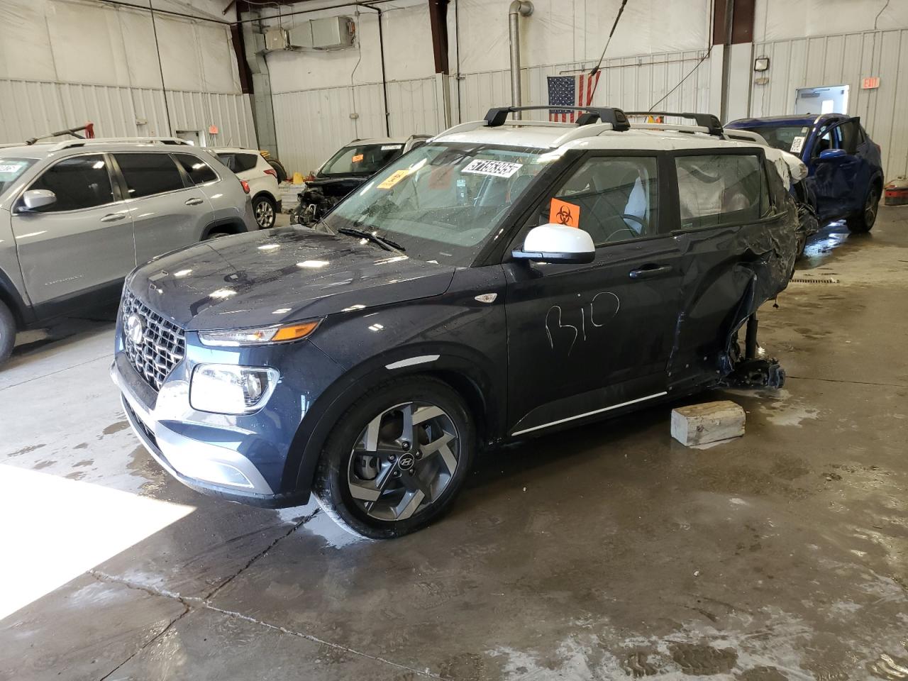 PoorThis is a severely damaged 2021 Hyundai Venue SEL. The primary damage is to the rear end, with significant secondary damage to the side of the vehicle. The car is blue. The vehicle's rear has been crushed, with extensive damage to the body panels. The side also shows major impact damage. The wheels appear to be intact despite the severity of the accident, but overall, the car is in very poor condition.