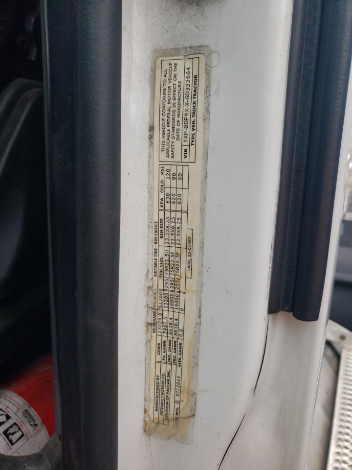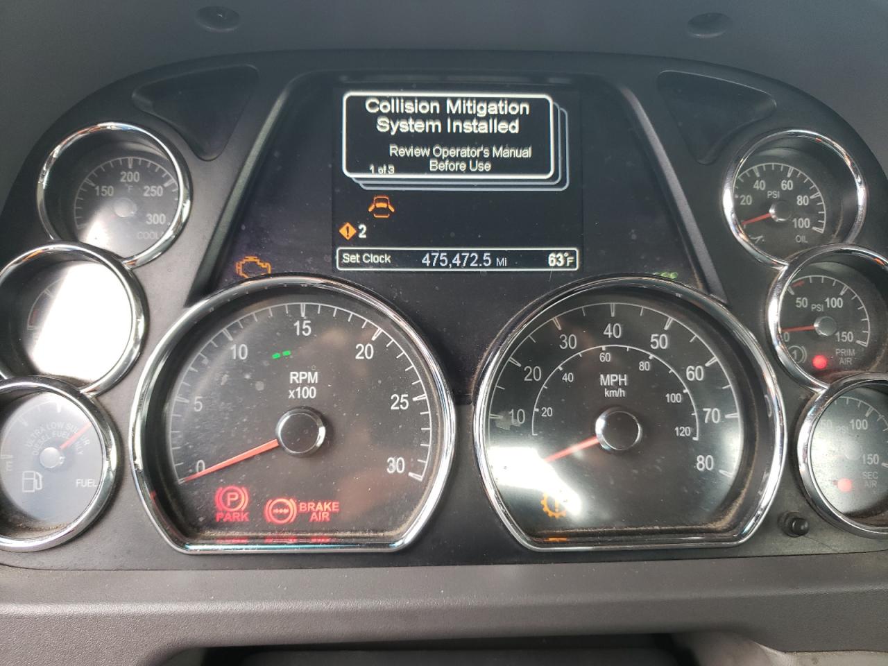GoodThe PETERBILT 579 2016, a white semi-truck, shows minor dent and scratches. The vehicle's overall exterior condition is assessed as Good, reflecting minor to moderate damage, potentially requiring replacement of a few elements. The interior condition is also rated as Good, with minor visible damage. The overall state of the truck is considered Good. It's a cab-over truck, with the cab directly above the front wheels, with a collision mitigation system installed. The vehicle's condition suggests it's drivable with some repairs.