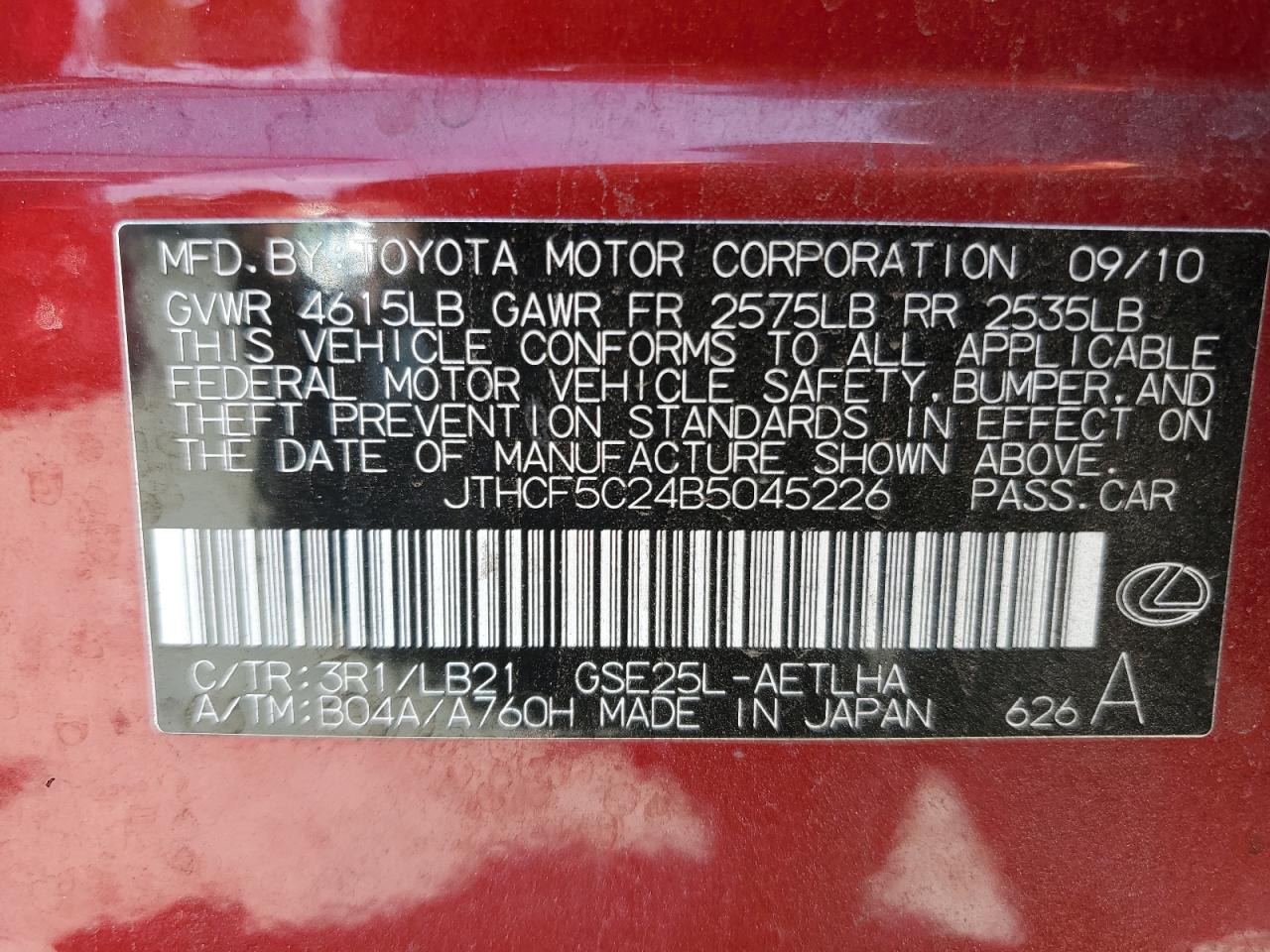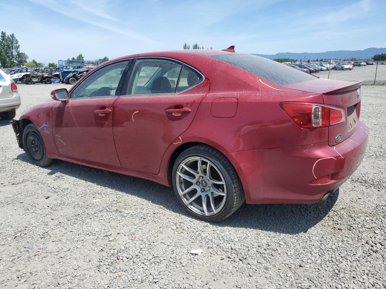 FairThe 2011 Lexus IS 250 is burgundy, exhibiting front-end damage. The vehicle's exterior displays signs of wear and tear, while the interior condition is relatively good. Visible damages include front-end collision impact points. The car is a Run & Drive Verified.