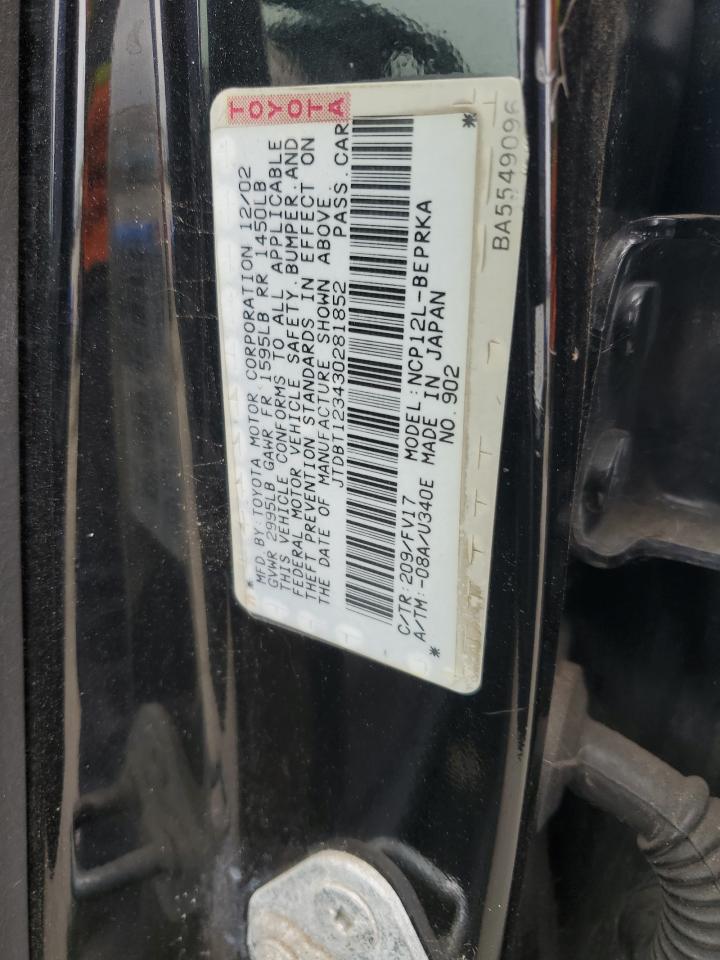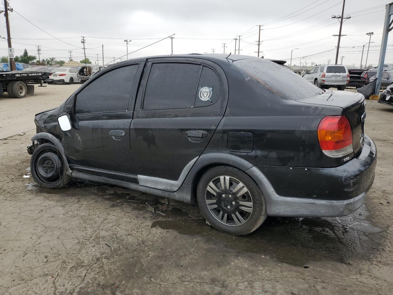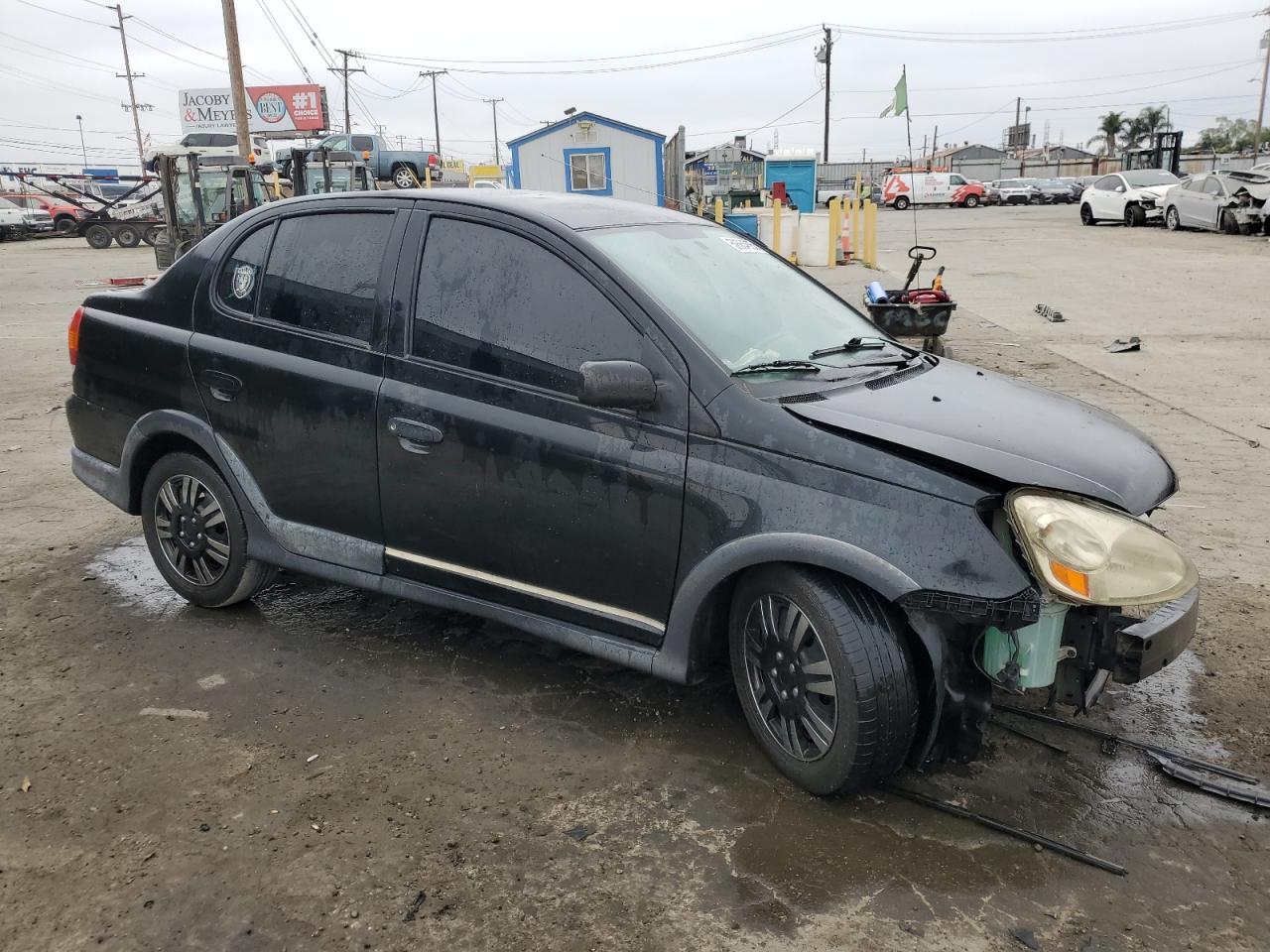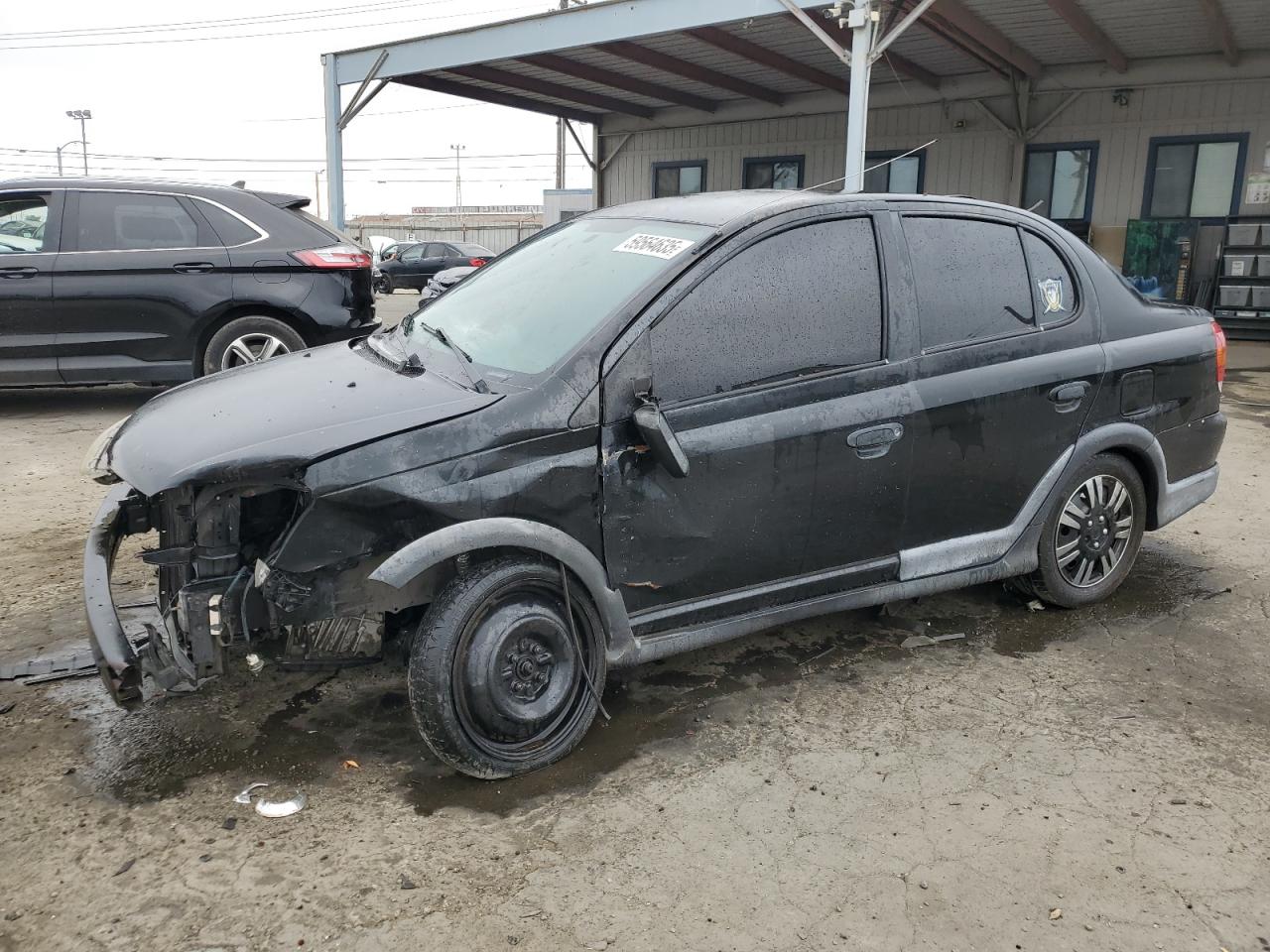 FairThe 2003 Toyota Echo is a compact car known for its fuel efficiency and reliability. The vehicle exhibits significant damage. The front end has sustained heavy damage, and there is damage to the side. The car's black exterior shows signs of wear. The wheels appear to be in decent condition. The headlights are damaged on one side. The glass is intact but may have some imperfections. The interior has visible damage, and the airbags have been deployed.