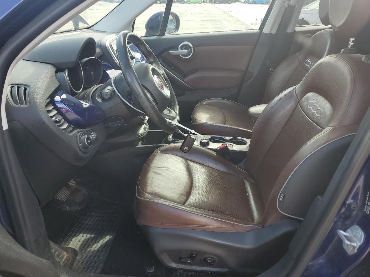 Fair2016 FIAT 500X LOUNG. Damage to the front end. The primary damage is Front End, with no secondary damage, the car is drivable. The exterior color is blue. Interior features include brown leather seats, The car is running, as the start code is Run & Drive Verified. Damage assessment: Front end collision, body damage present.