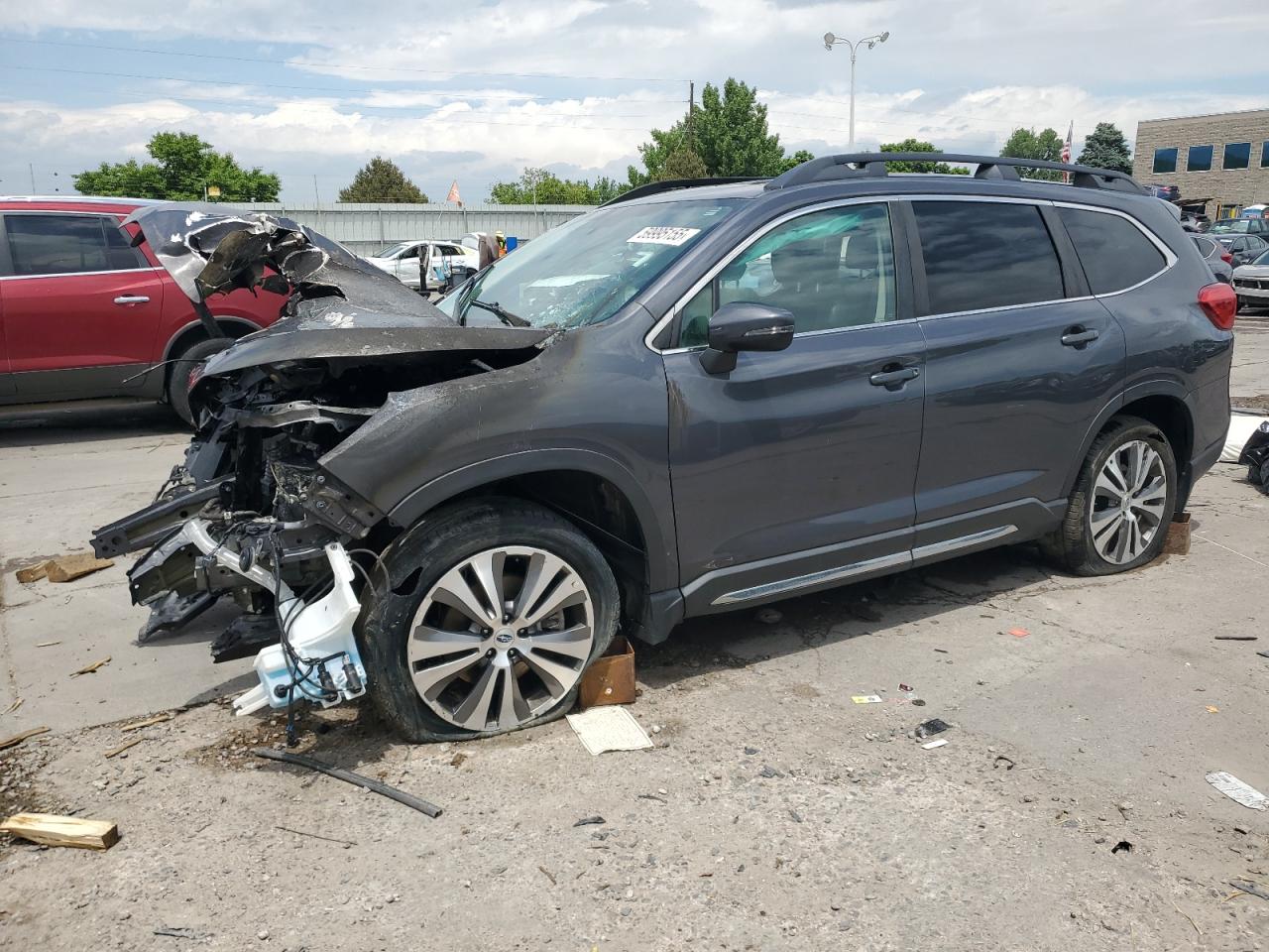 PoorThe Subaru Ascent Limited 2020 in charcoal has sustained significant damage. The primary damage is to the front end, with secondary damage including an engine burn. The car's exterior exhibits extensive damage, including the front end, with the frame affected, the wheels are damaged, and the lights and glasses show signs of impact. Interior damage is also present. The airbags were deployed. This vehicle requires considerable repair and is not drivable.