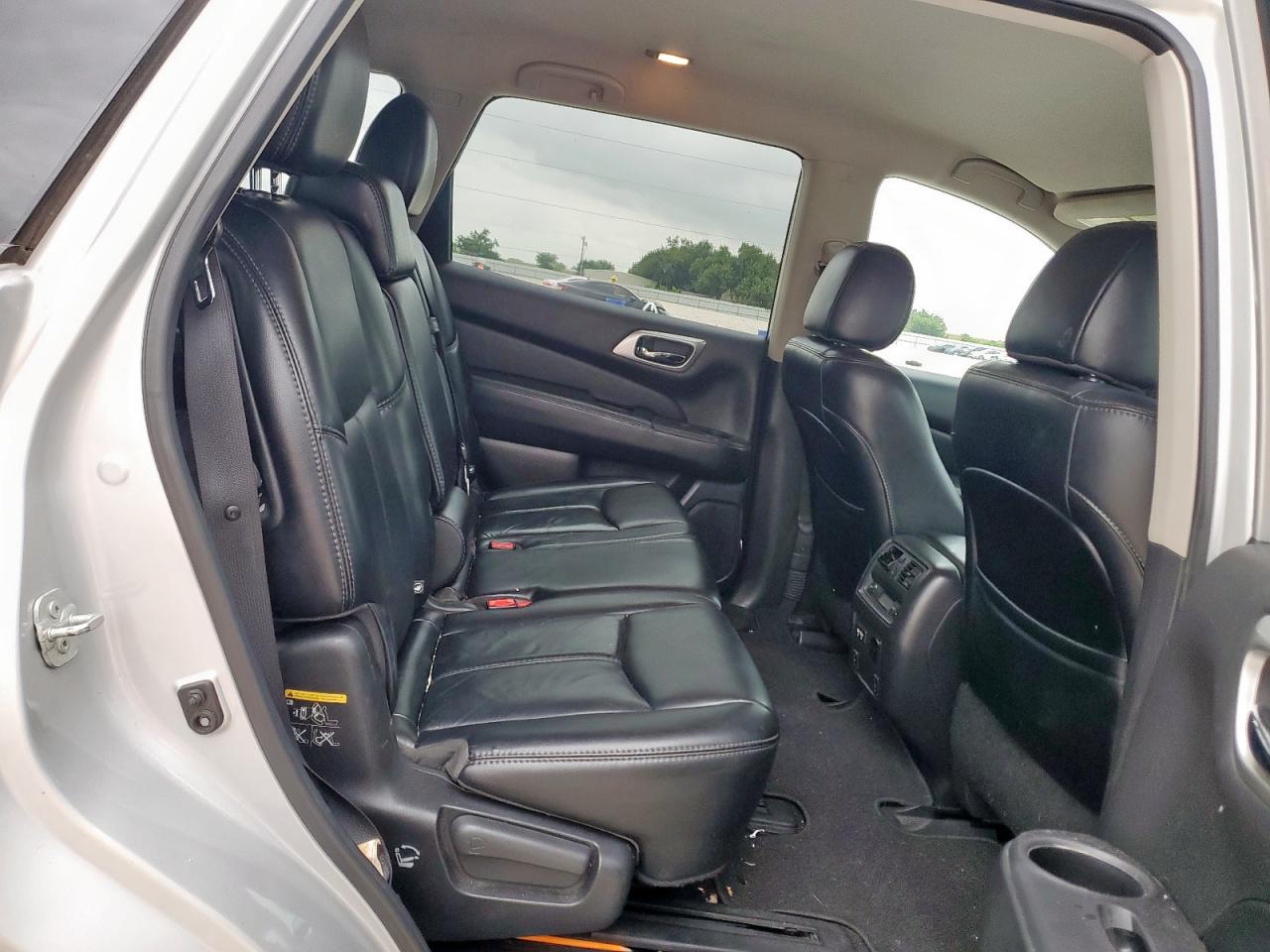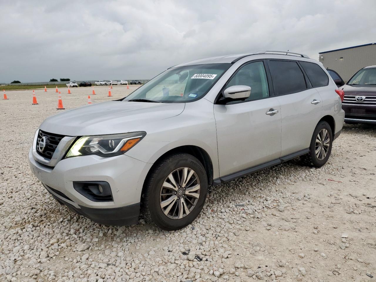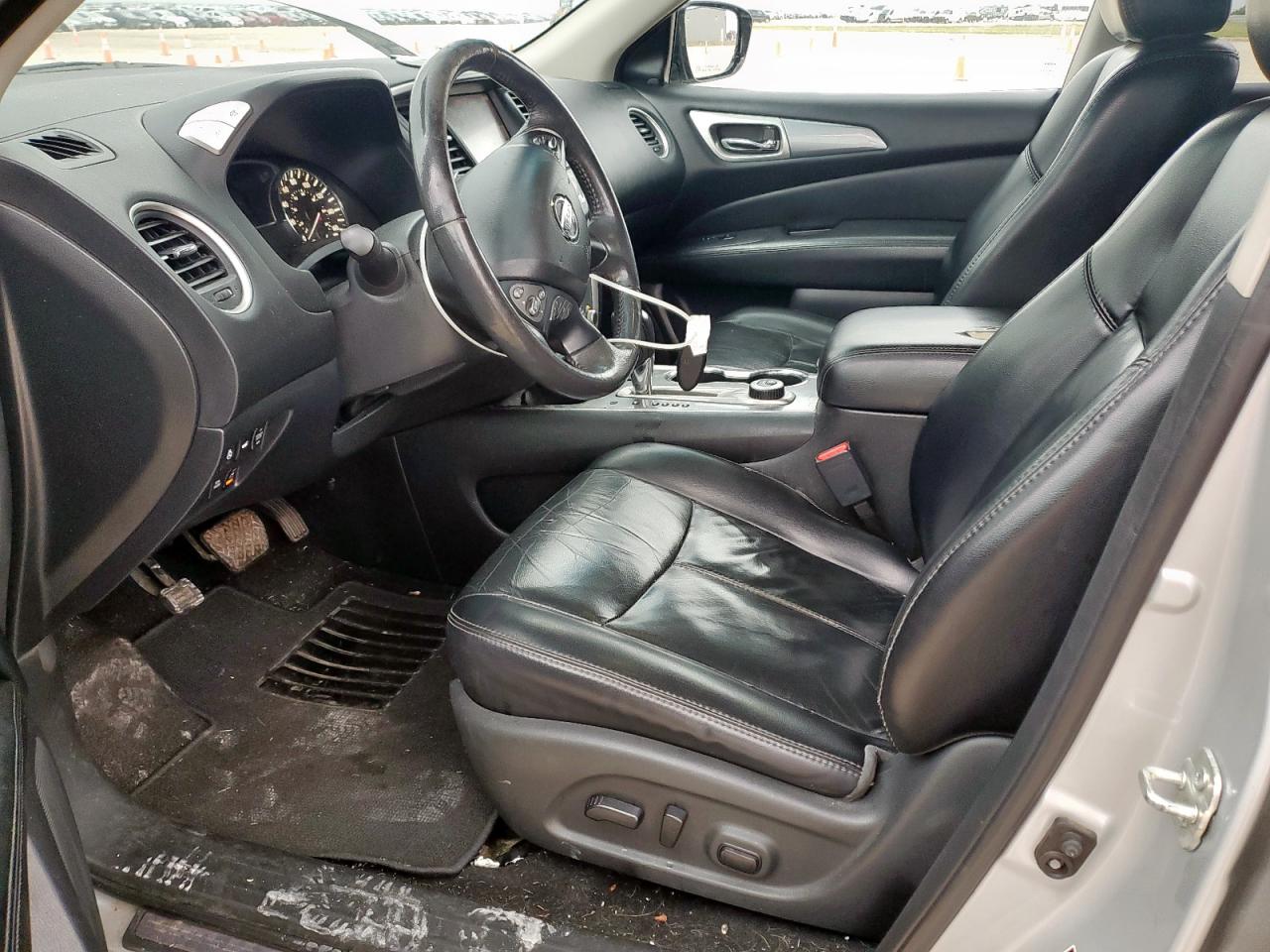 GoodThis silver 2017 NISSAN PATHFINDER shows hail damage as the primary issue, with no other secondary damage reported. The vehicle is listed as Run & Drive Verified, suggesting it is operational. The exterior displays damage to body panels, and the interior condition is fair. Visible damages include interior wear, potentially damaged trim, and a "Low Fuel" indicator on the dashboard. The glasses and lights appear to be intact, but the car's overall condition reflects the need for some repairs, primarily cosmetic and body work.