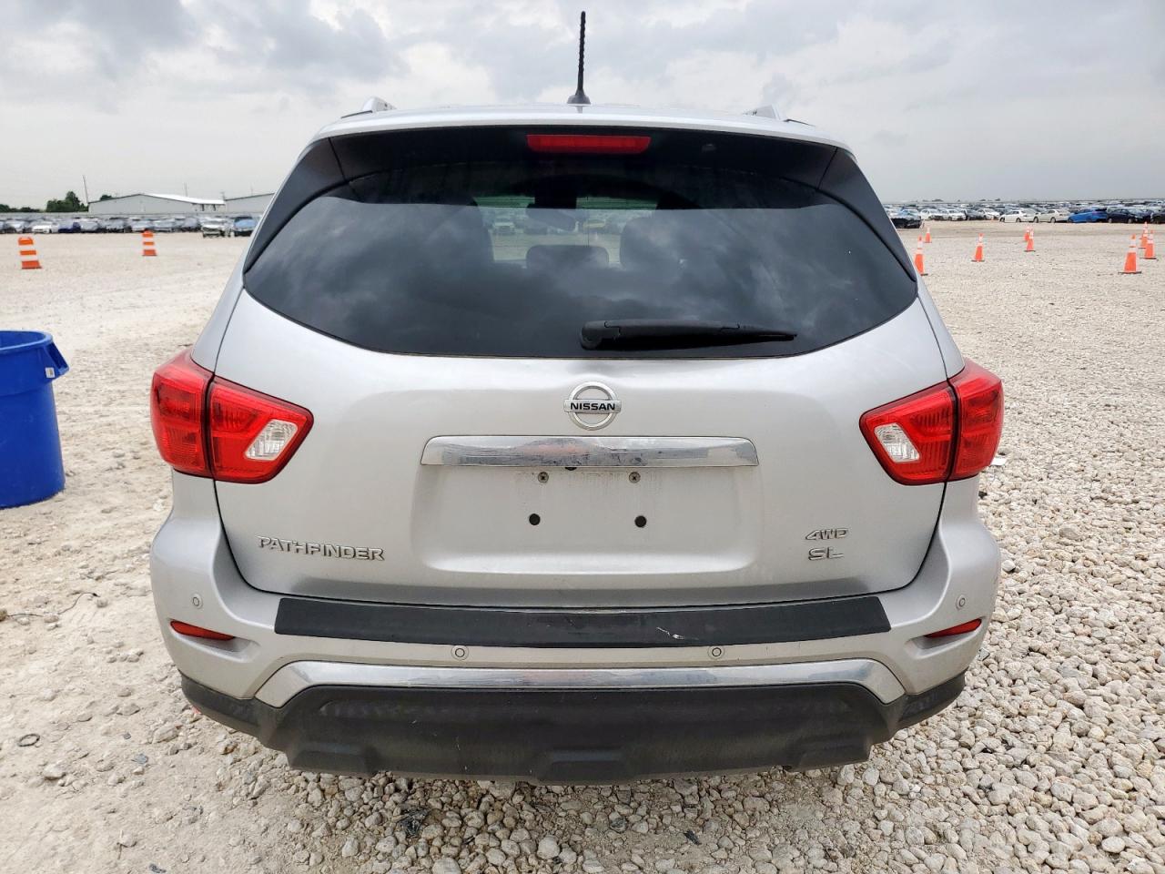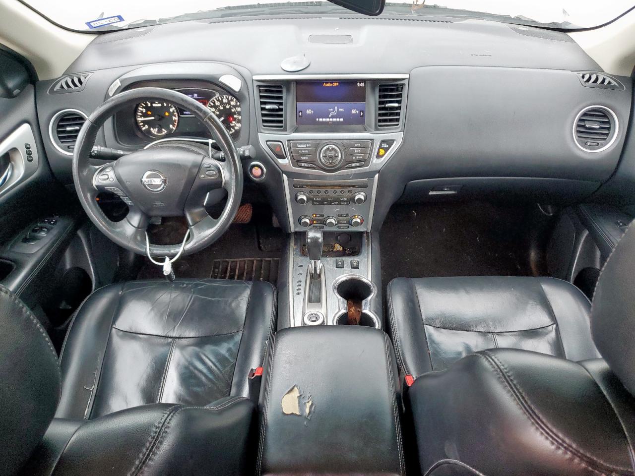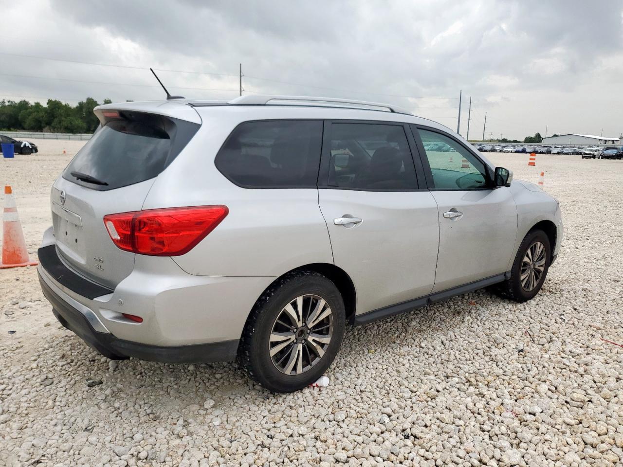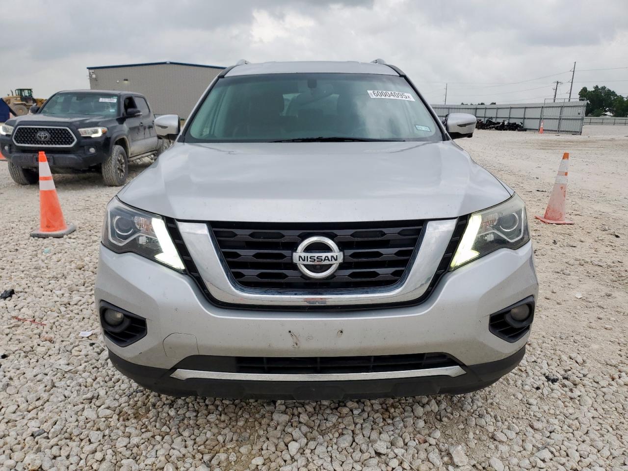 GoodThis silver 2017 NISSAN PATHFINDER shows hail damage as the primary issue, with no other secondary damage reported. The vehicle is listed as Run & Drive Verified, suggesting it is operational. The exterior displays damage to body panels, and the interior condition is fair. Visible damages include interior wear, potentially damaged trim, and a "Low Fuel" indicator on the dashboard. The glasses and lights appear to be intact, but the car's overall condition reflects the need for some repairs, primarily cosmetic and body work.