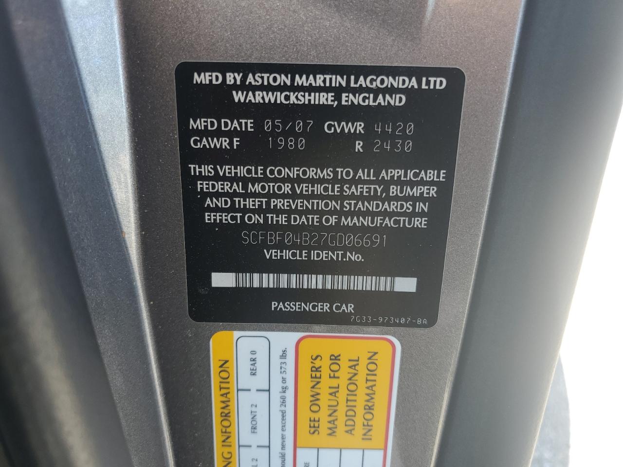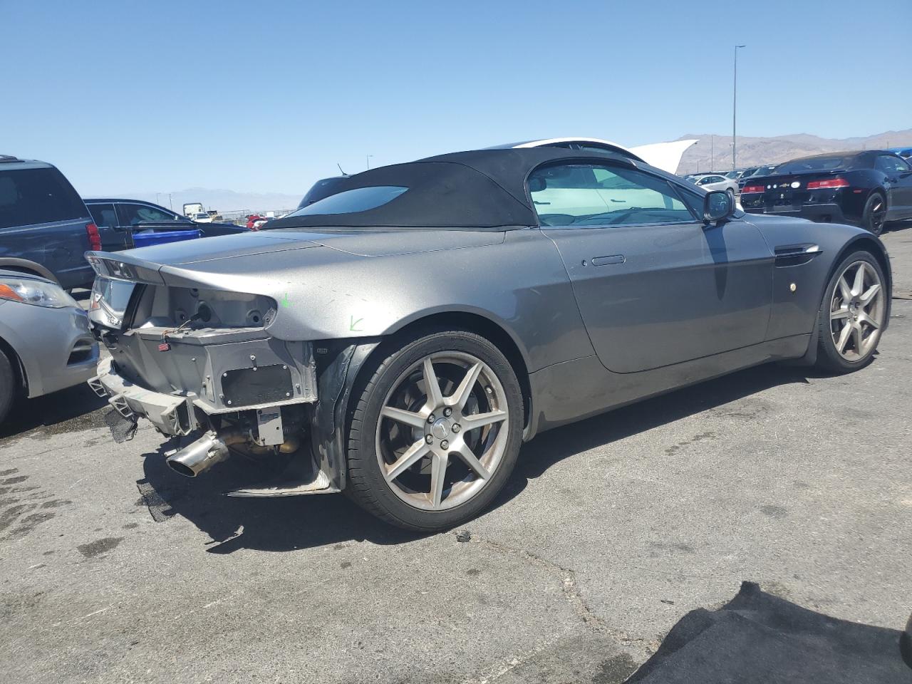 Fair2007 Aston Martin V8 Vantage convertible. This silver sports car exhibits rear-end damage, indicating a body impact. Despite the visible damage to the rear, the car is classified as "Run & Drive Verified". The interior shows signs of wear appropriate for its age and mileage, with no readily apparent mechanical issues. The lights and glasses appear to be in good condition. The wheels are fine. The vehicle presents a project car opportunity, requiring repairs to the bodywork.