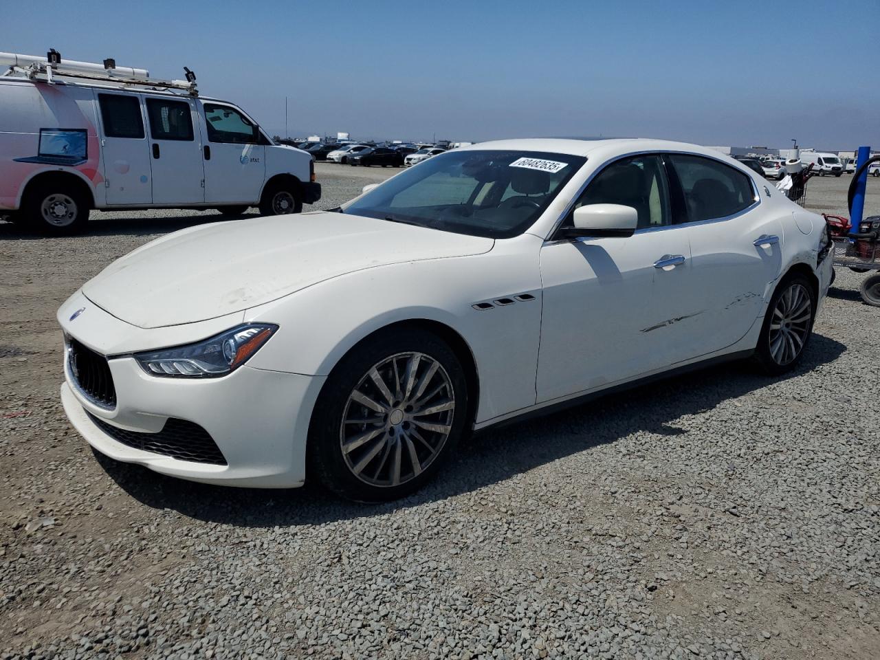 FairThis is a white 2015 Maserati Ghibli with rear-end and side damage. The car shows significant damage to the rear, including the bumper and quarter panel. There's also damage along the side. The interior appears to be in reasonable condition. The wheels and glasses look intact.