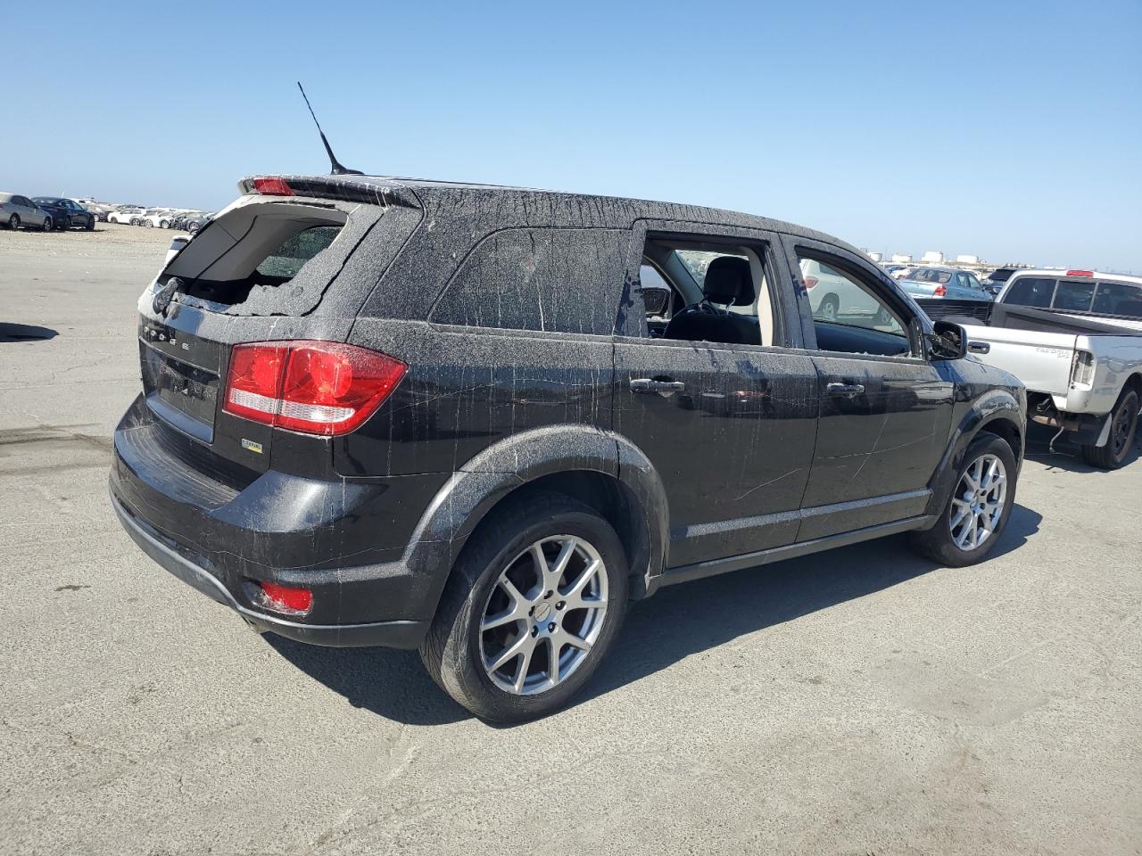 FairThe 2011 Dodge Journey R/T is a black SUV that has sustained significant damage, primarily from vandalism. The rear window is completely shattered, and there are apparent impacts to the body panels. The overall state of the vehicle is poor, with notable damage to both the exterior and interior. The interior shows signs of wear and tear. The wheels appear to be in decent condition. The car requires considerable repair.