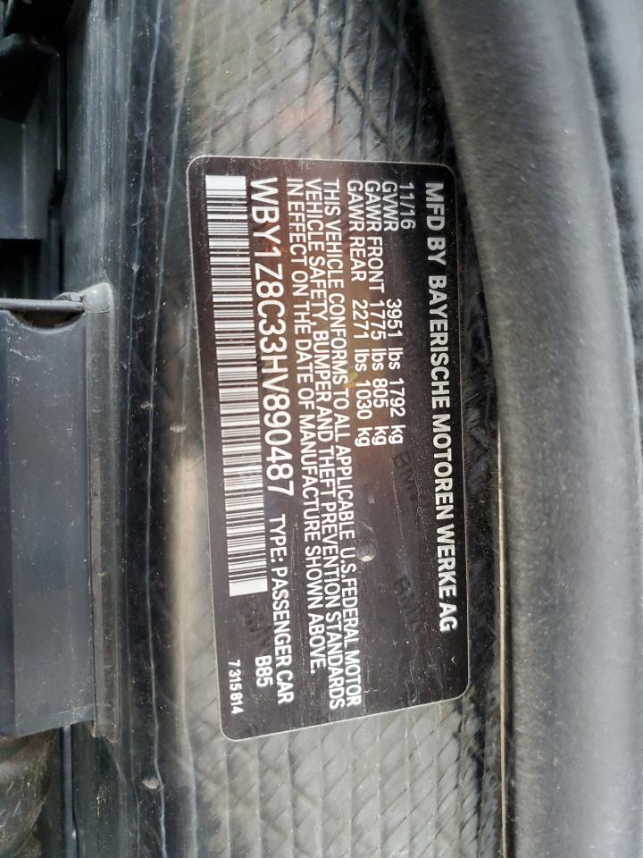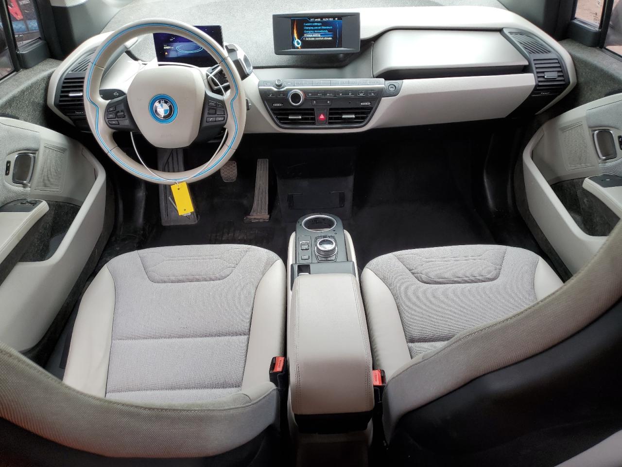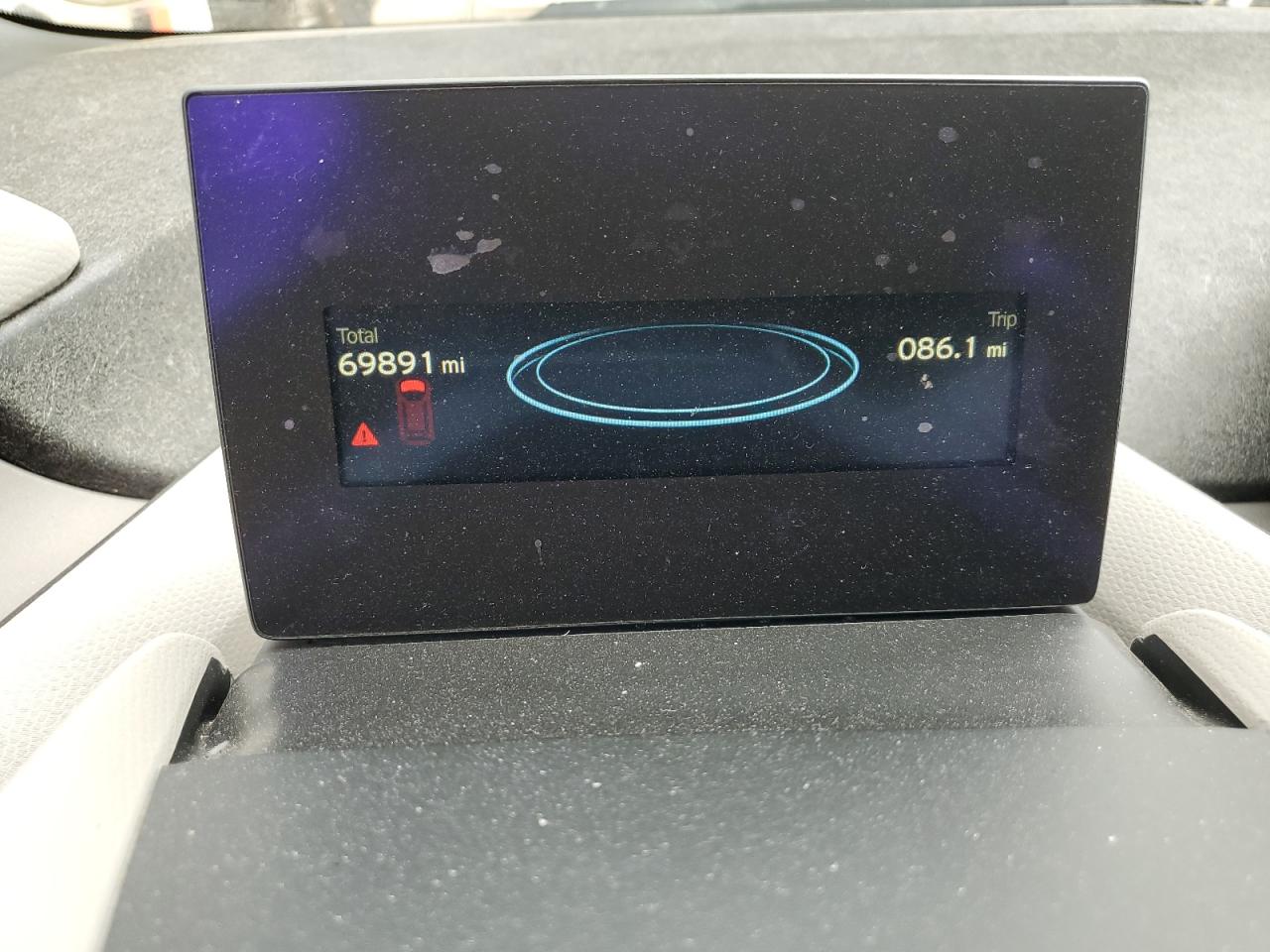 FairThe 2017 BMW i3 REX has sustained side and rear end damage, with a white exterior. The wheels appear intact. The car's lights and glasses seem to be in good condition. The interior shows minor wear and tear. The vehicle is likely drivable despite the body damage.