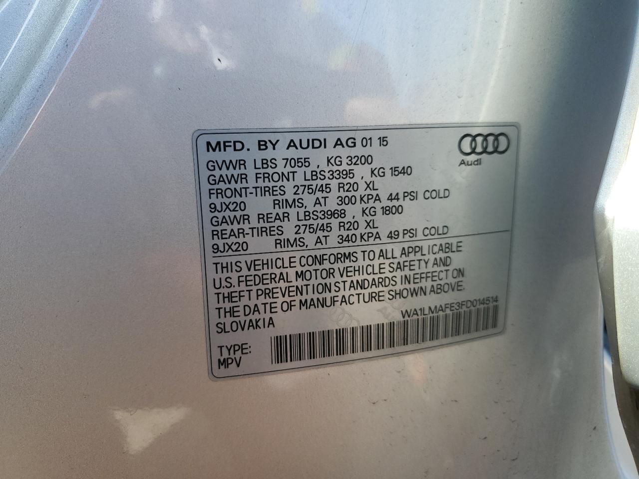 FairThe 2015 AUDI Q7 is a silver SUV. The primary damage is VANDALISM with secondary damage to the SIDE. The car shows signs of cosmetic and body damage, with potential impact to body panels. The interior appears to be in relatively good condition with minor wear and tear. There is no visible damage to the wheels or lights. The car's overall condition suggests it may require repairs, but the vehicle is drivable. Overall Condition: Fair, Vehicle Damage Category: Body