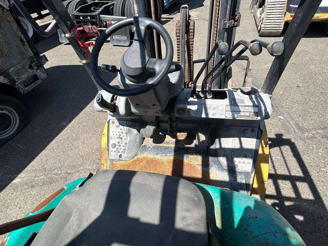 The yellow 2008 KOMA FORKLIFT shows signs of mechanical issues and cosmetic wear. The exterior exhibits moderate visible damage, potentially impacting the vehicle's drivability. The wheels appear to be intact, but the mechanical damage suggests the need for significant repairs. The interior shows minor visible damage, consistent with its age. The airbags status is unclear. The forklift requires mechanical repairs and has some cosmetic issues. The vehicle needs repair.