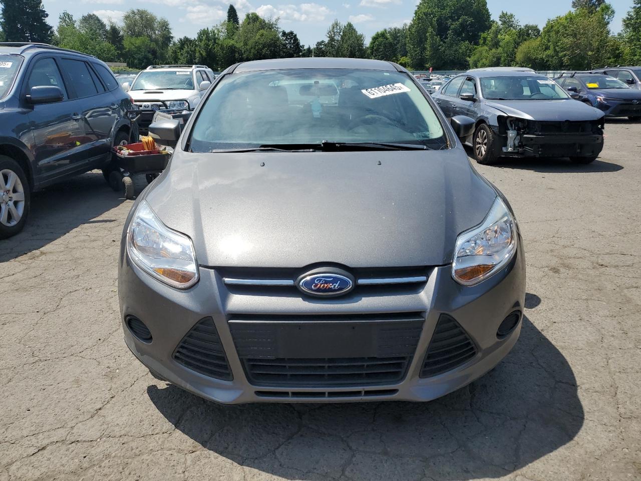 GoodThe 2013 Ford Focus SE in gray displays front-end damage, with no secondary damage reported. The vehicle starts and the body panels show signs of damage. The interior shows moderate wear consistent with age and mileage. Wheels and glasses appears to be in good condition. The car may require some repairs but is drivable.