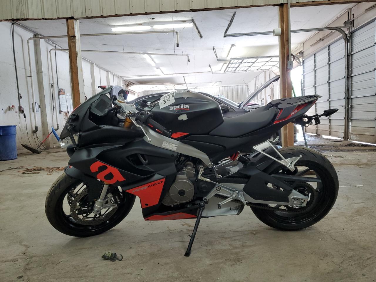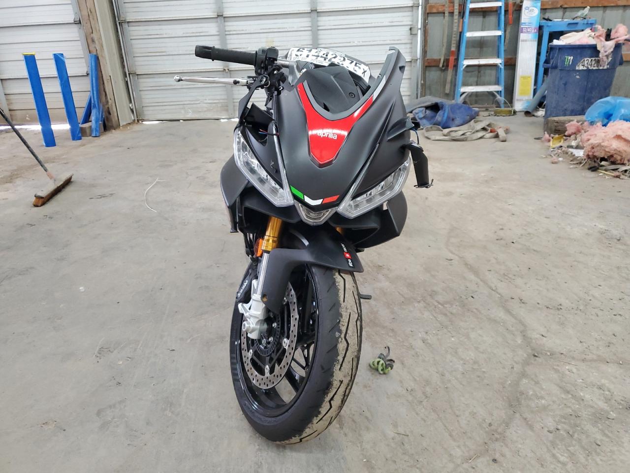 FairThis is a 2024 Aprilia RS 660 motorcycle in black with front-end and rear-end damage. The motorcycle's front end shows significant damage, and the rear end also has visible issues. The body panels are affected. The motorcycle's overall condition is fair. The interior appears to be in good condition. There are visible damages to the front fairing, lights, and the rear section. The wheels appear to be fine. It might be drivable, but it needs considerable repair.