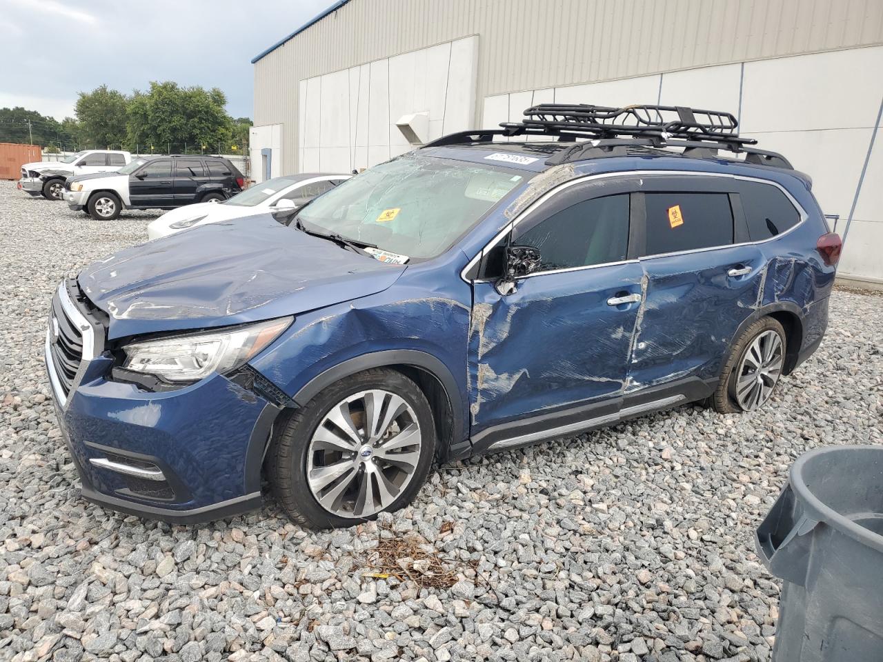 The SUBARU ASCENT TOU 2019 suffered extensive damage from a rollover. The exterior shows significant body panel damage, with visible impact on multiple sides. Lights and glasses are damaged. The interior shows signs of airbag deployment. The overall state reflects extensive damage requiring significant repairs, the car is not drivable in this condition.