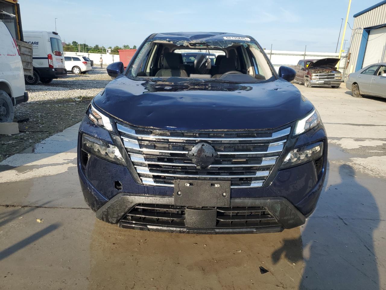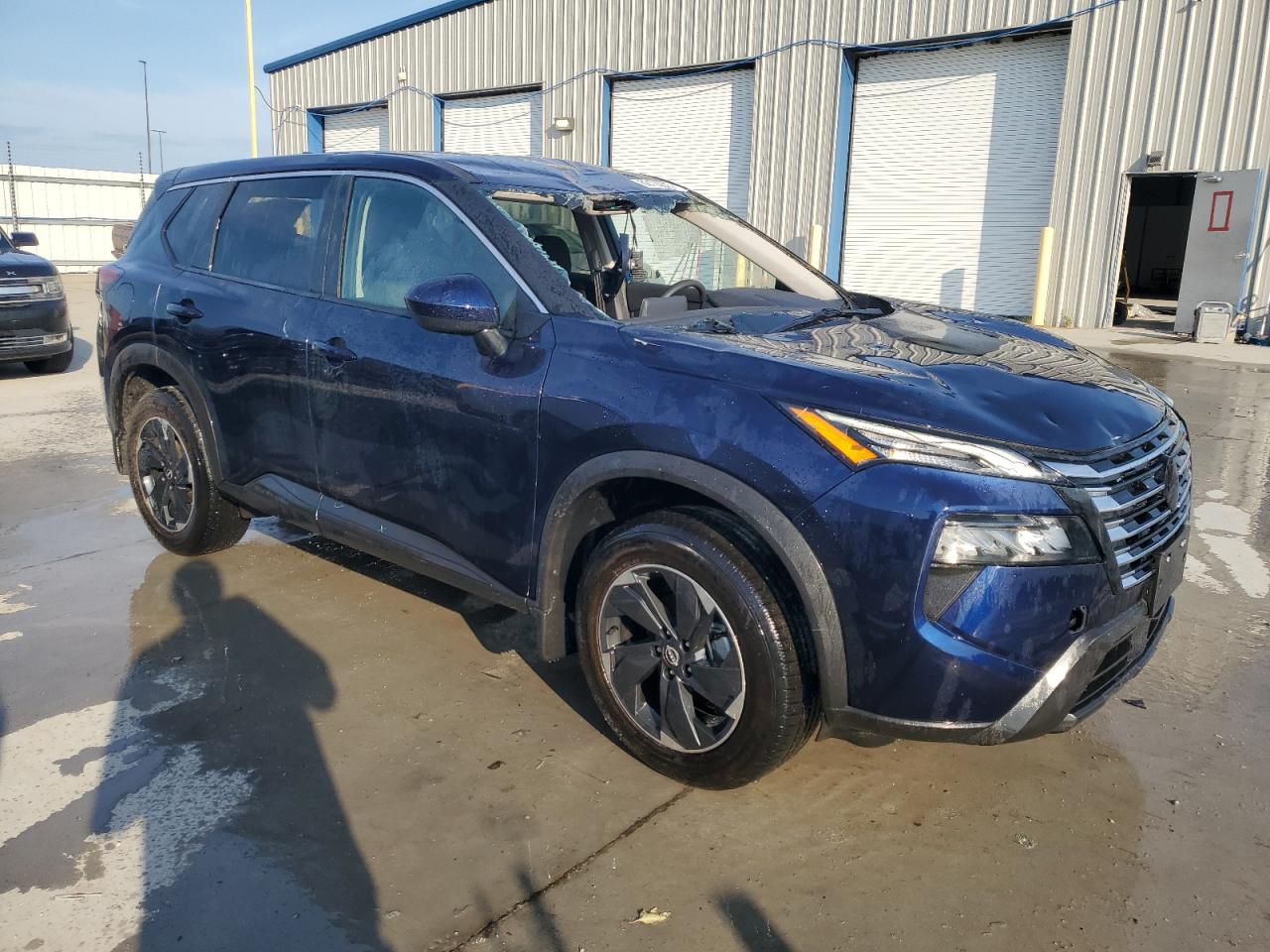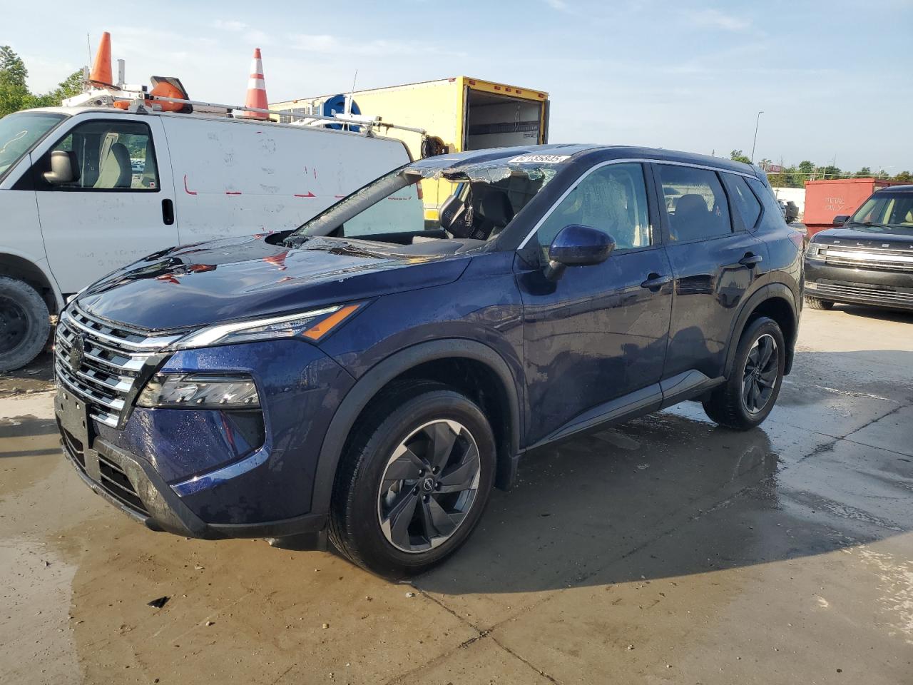 FairThis is a blue NISSAN ROGUE SV 2025. The primary damage is on the top/roof and secondary damage is on the front end. The car is running and drivable. The wheels appear intact. The lights and glasses have damage, The car's interior shows some wear, with the dashboard and seats appearing to be in decent condition. Airbags status not visible. The vehicle's damage category is Body.