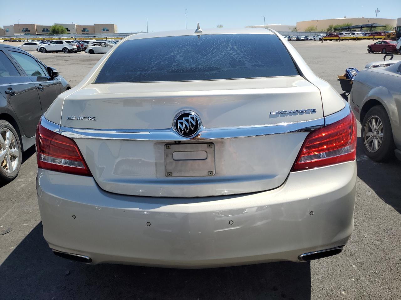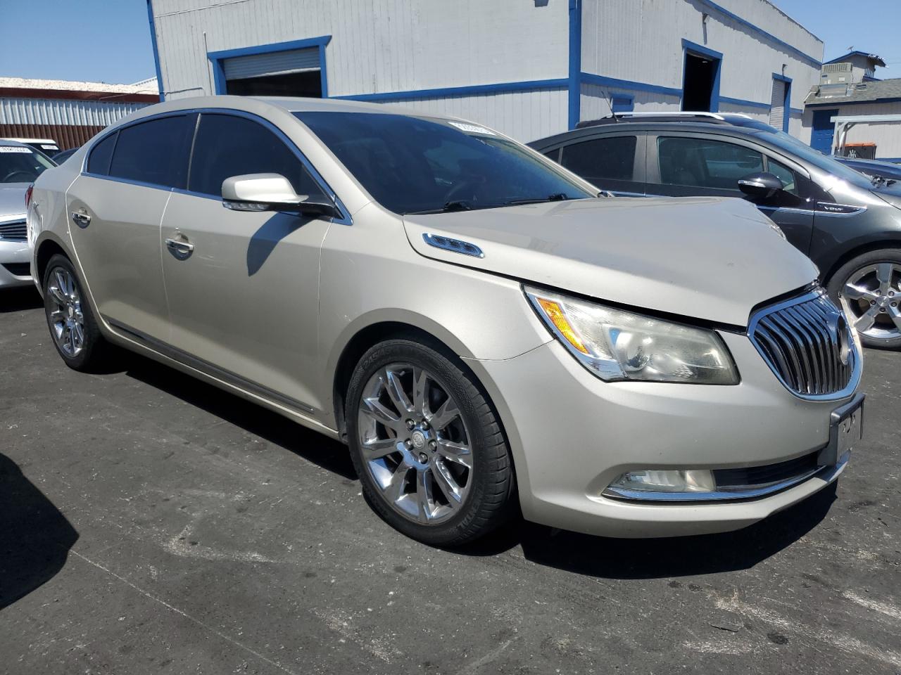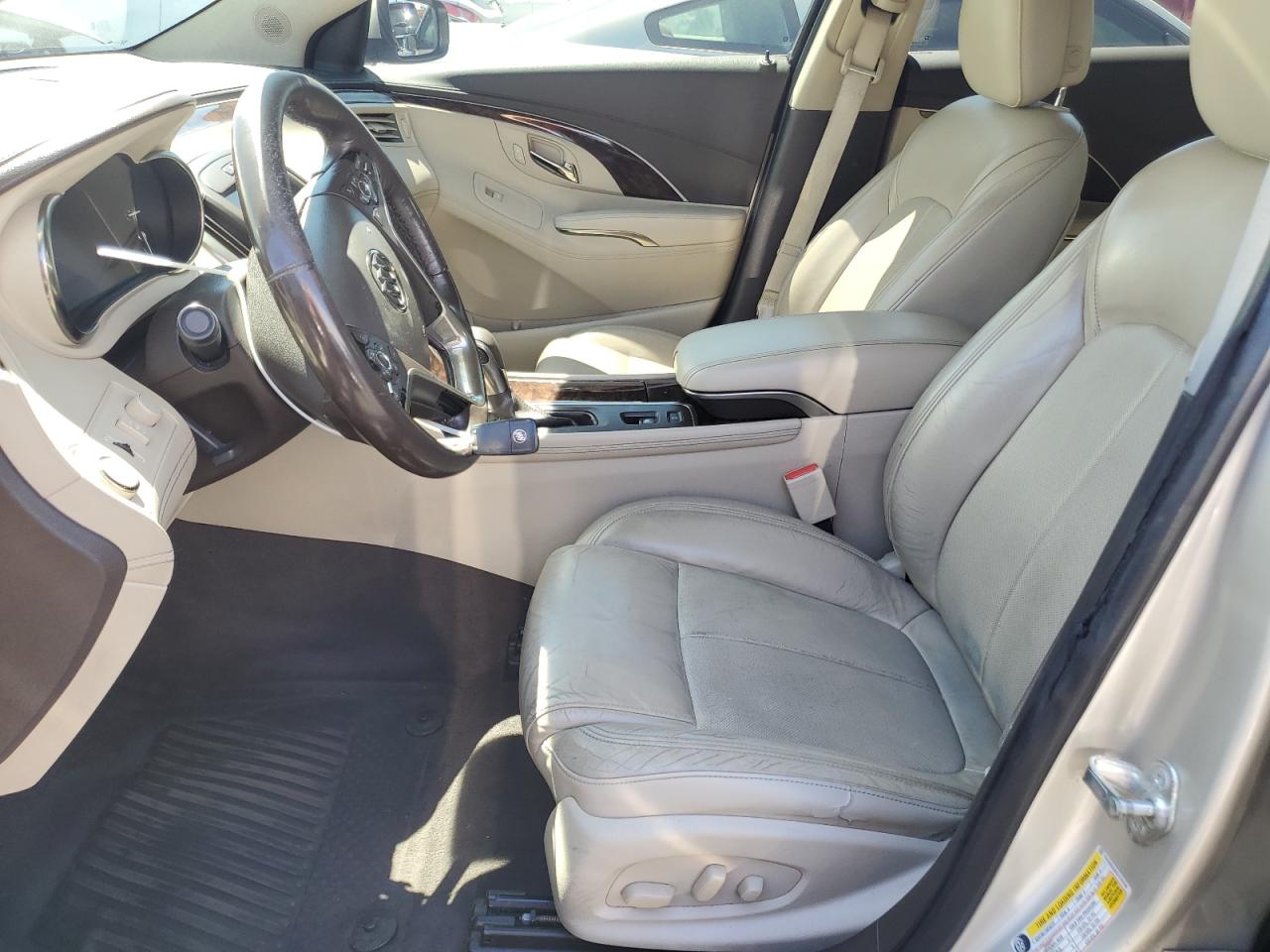 FairThis is a 2014 BUICK LACROSSE P. The primary damage is to the FRONT END, indicating a collision. The car is cream in color and the wheels appear intact. The lights and glasses seem to be in relatively good condition, although the front end damage might affect the headlights. The car starts and runs, verified by Run & Drive. Interior condition is considered Good with normal wear and tear.