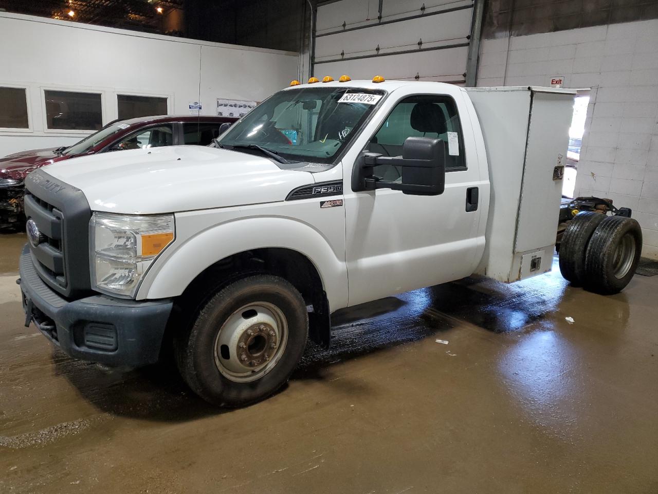 GoodThis is a 2015 Ford F350 Super Duty. The vehicle's exterior shows minor cosmetic damage, including dents and scratches, primarily on the body panels. The white paint appears to have sustained some wear and tear. The interior presents with moderate wear. The vehicle is confirmed as Run & Drive Verified.