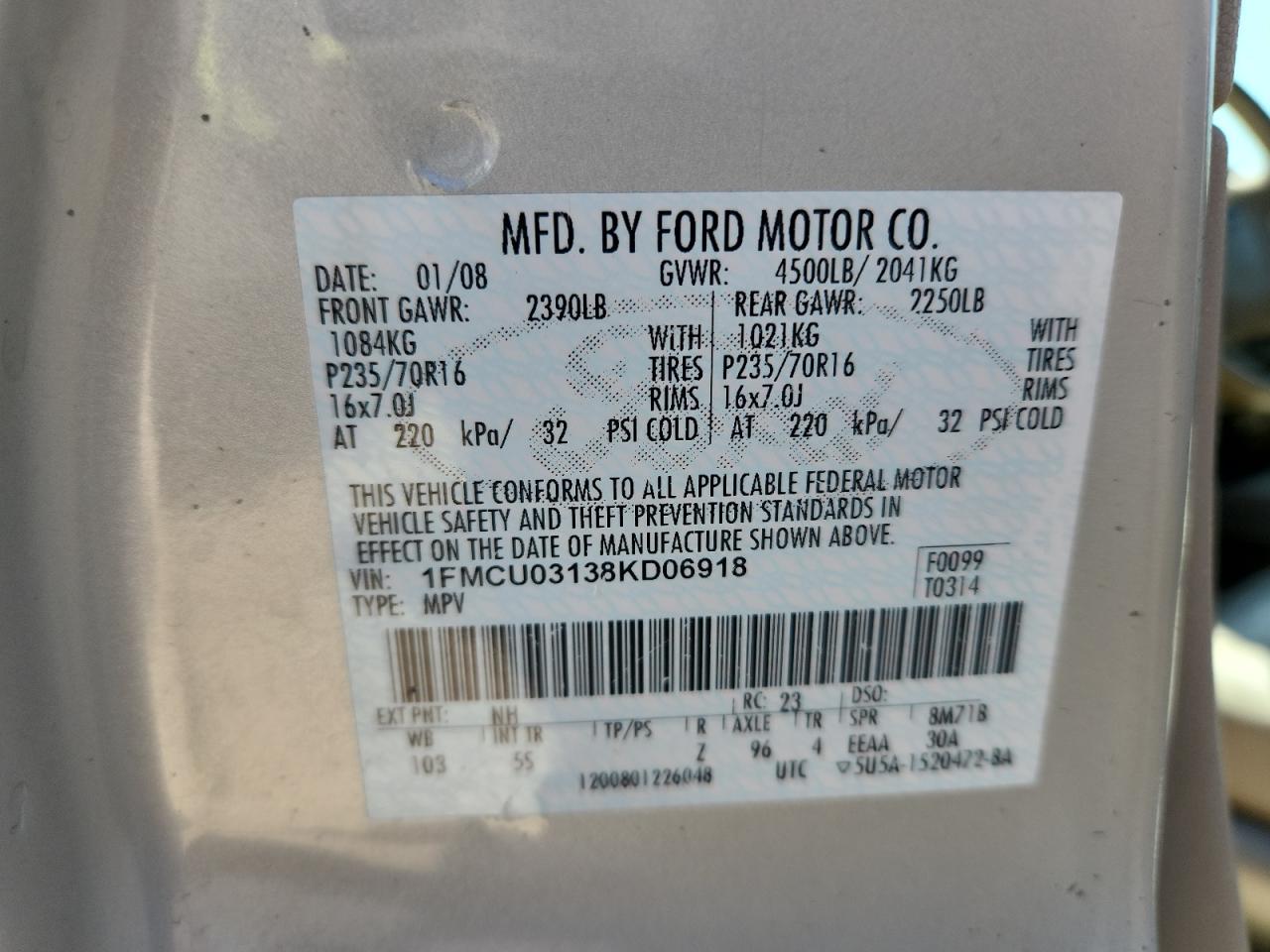 1FMCU03138KD06918Fecha