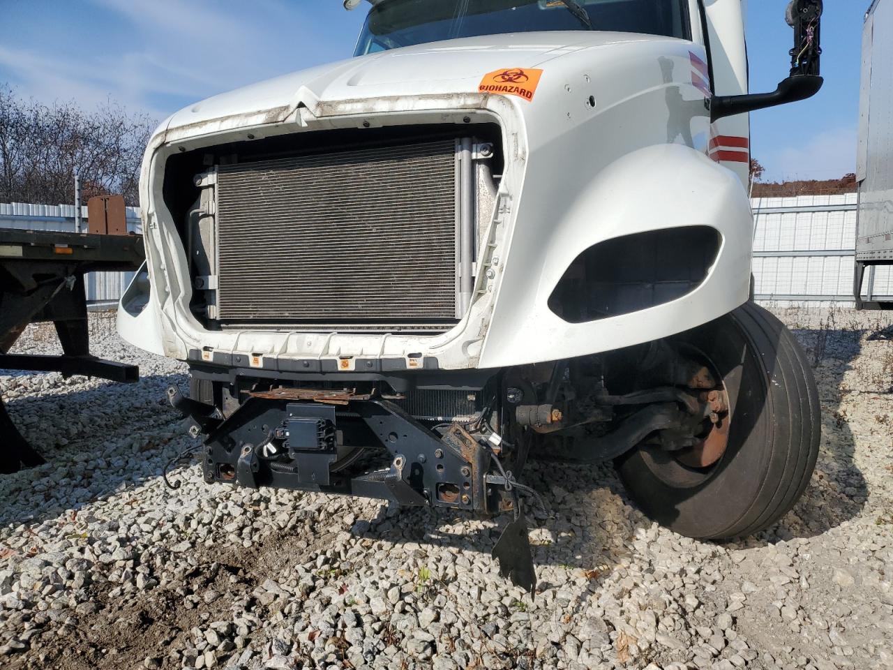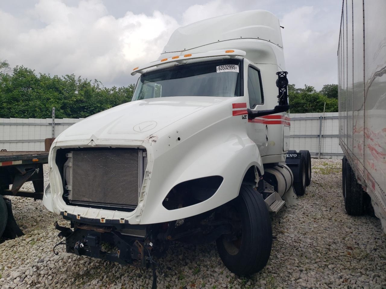 FairThe white INTERNATIONAL LT625 2021, exhibits significant front-end damage, indicating a collision. The vehicle's exterior displays considerable damage, particularly at the front, affecting the lights, and body panels, while the wheels appear intact. The interior condition indicates signs of damage as well. The vehicle is likely drivable but requires significant repairs.