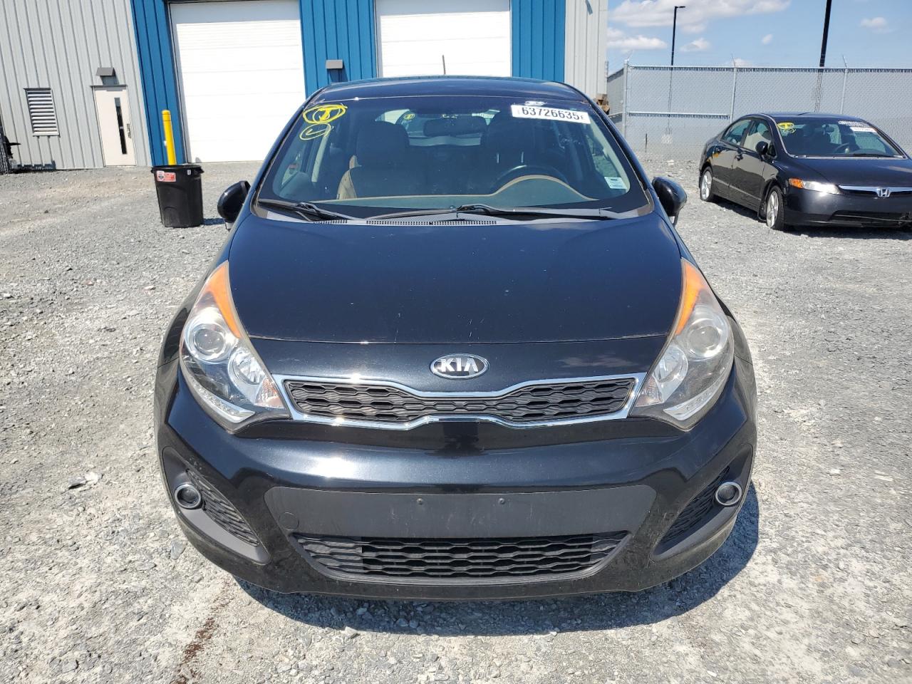 FairThe 2014 KIA RIO EX, a black hatchback, shows significant side body damage, likely from a collision, impacting its overall condition. Despite the body damage, the interior appears to be in relatively good condition. The vehicle is considered run and drive verified. The wheels and lights appear intact. The car's glasses seem to be in good shape. The airbags condition isn't visible. The car might be drivable.
