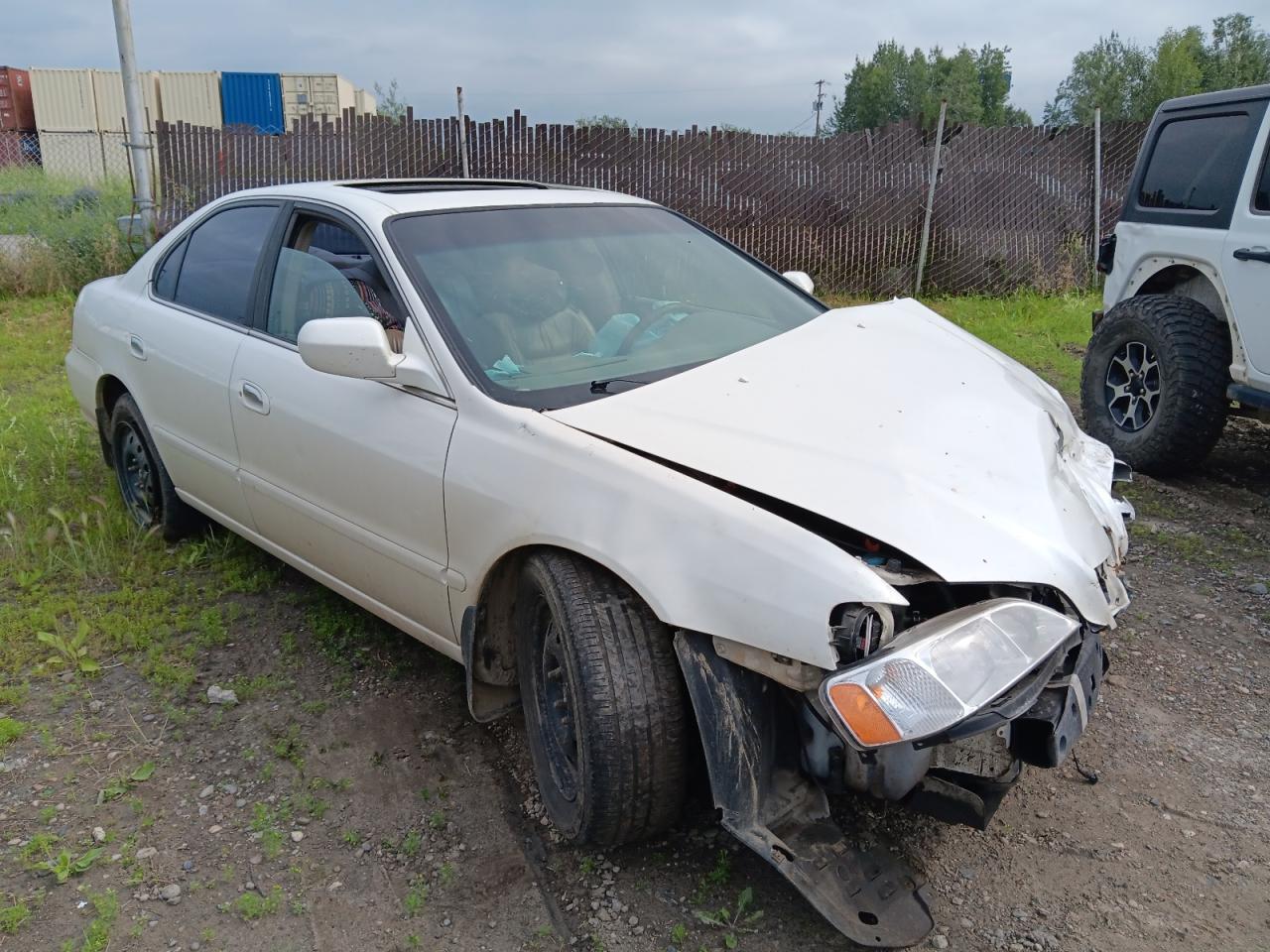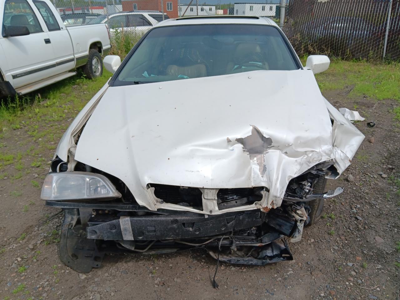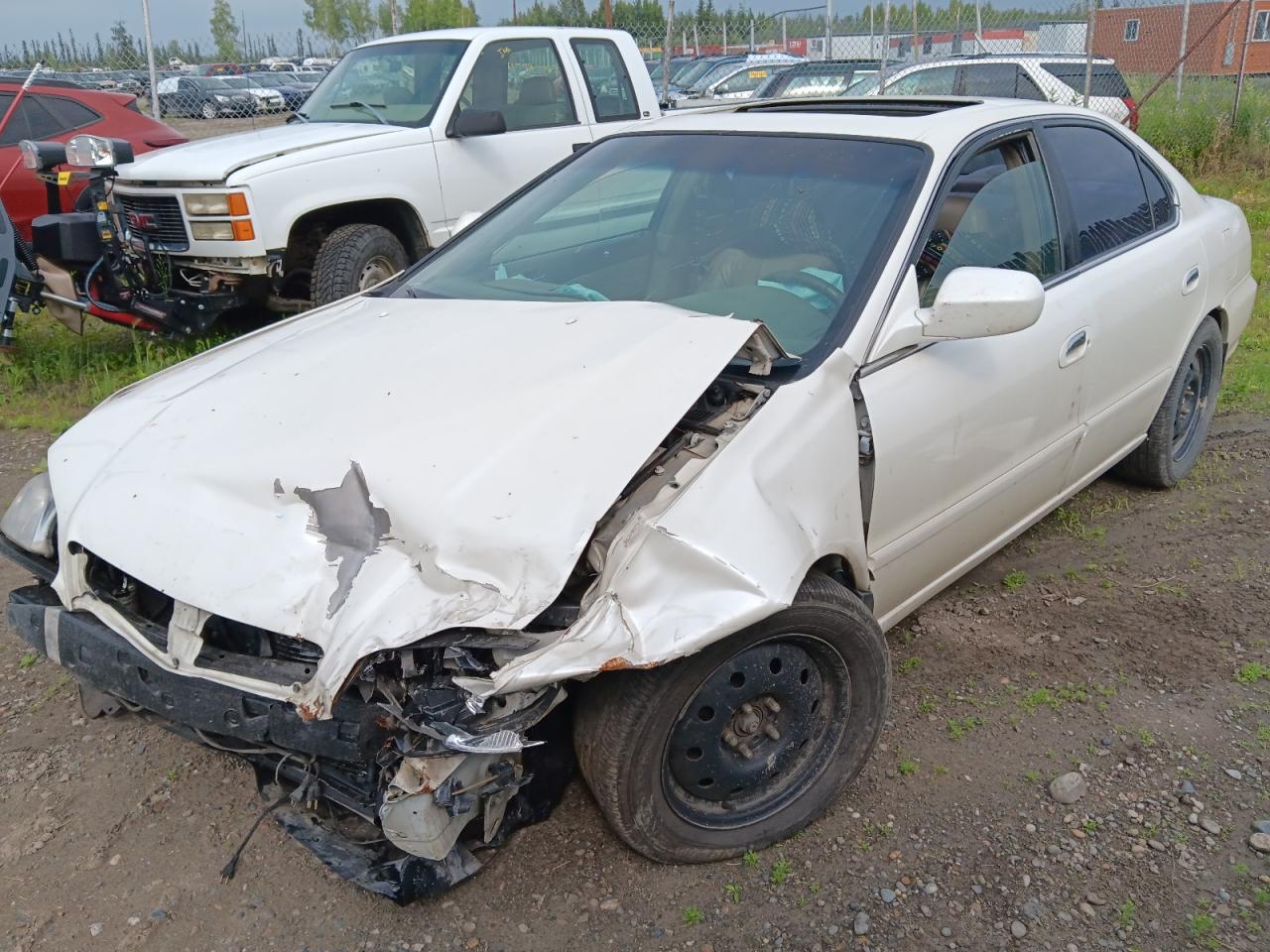 PoorThis is a white 2000 Acura 3.2TL with significant front-end damage, including a crushed front bumper, hood, and fenders, indicating a severe collision. Both front airbags have deployed, and the interior shows signs of wear, with deployed airbags and other damages. The vehicle's overall condition is poor, needing substantial repairs.