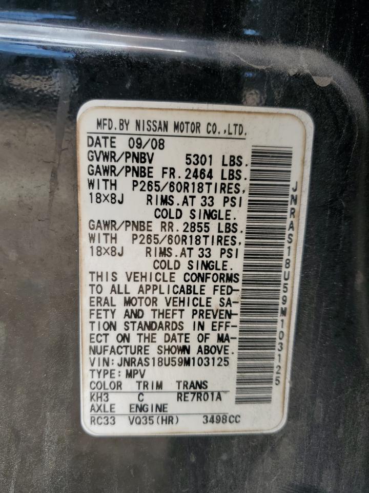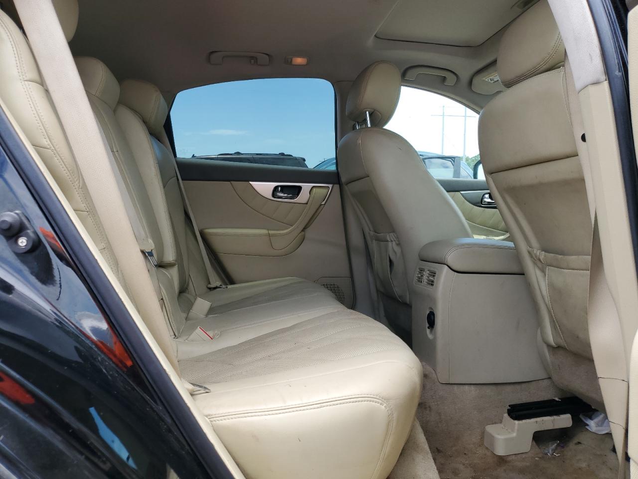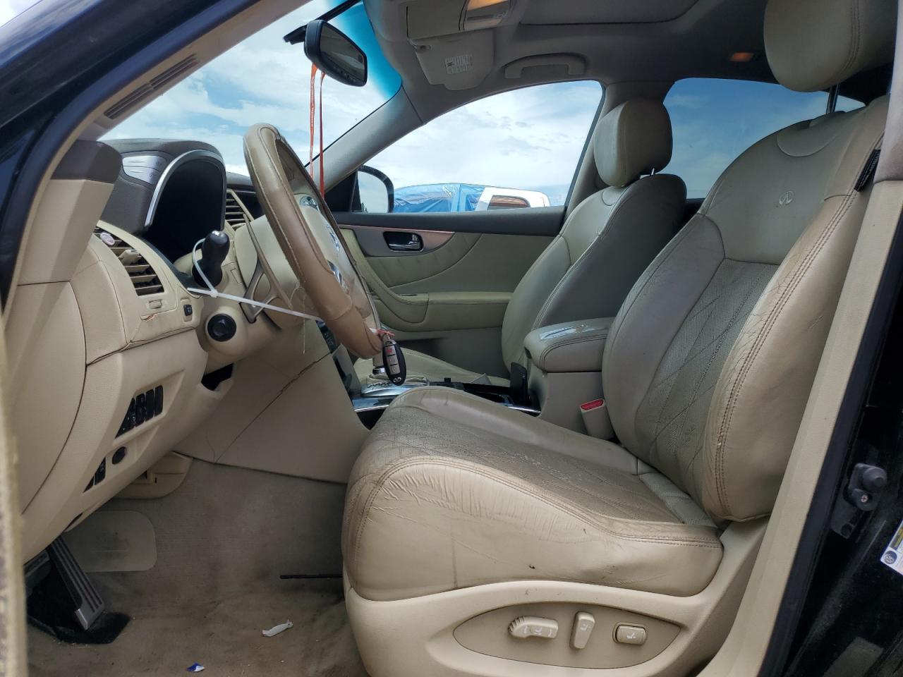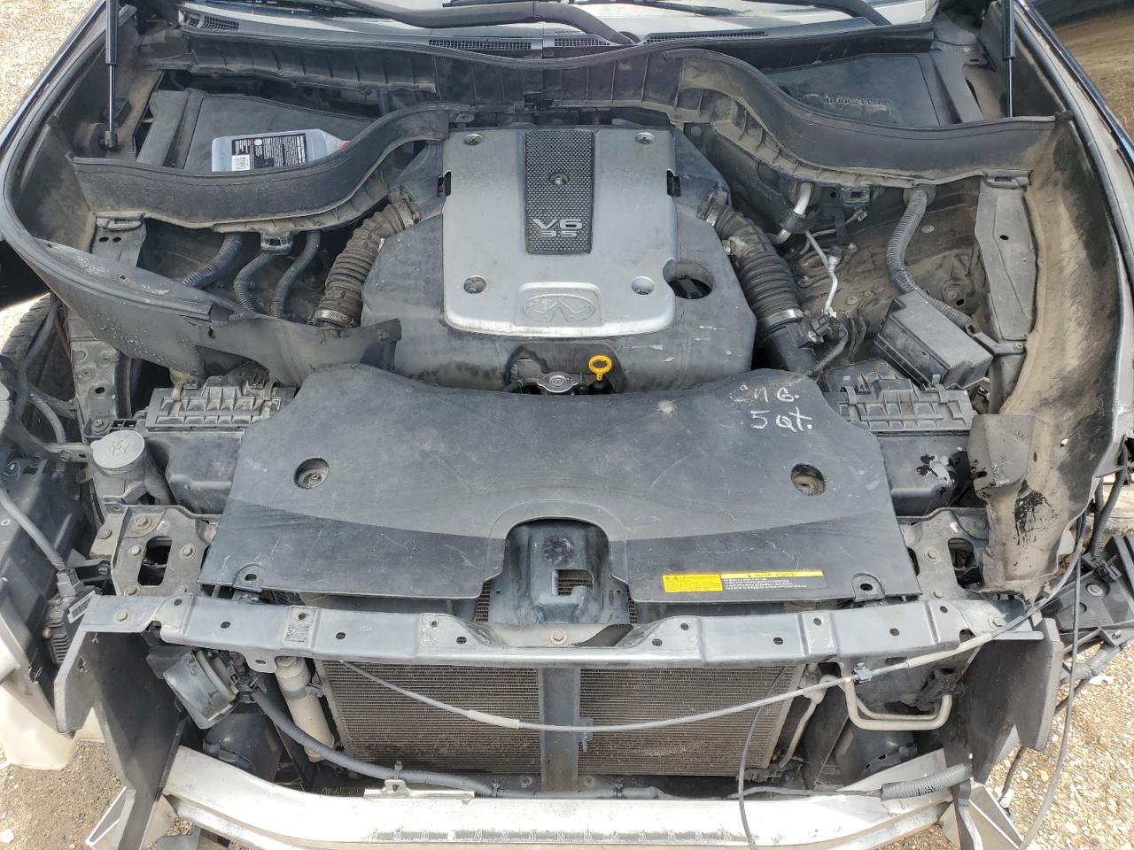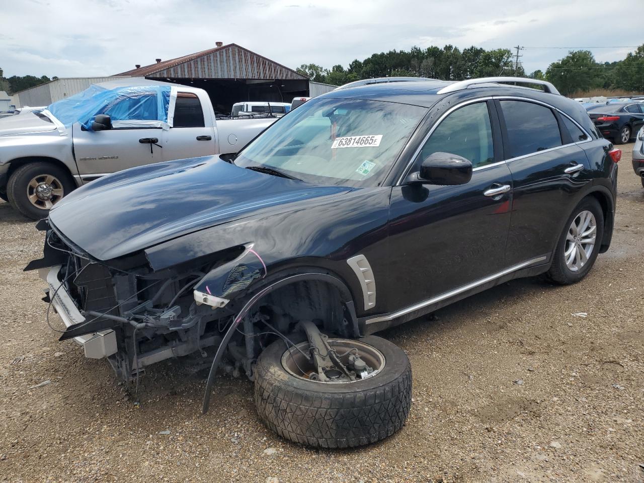 FairThe 2009 INFINITI FX35 is a black SUV with significant front-end damage, including a missing wheel and extensive body panel damage. The undercarriage also shows signs of damage. The interior has visible wear and tear, with potential damage. The car's current state suggests it requires considerable repair. It is Run & Drive Verified.