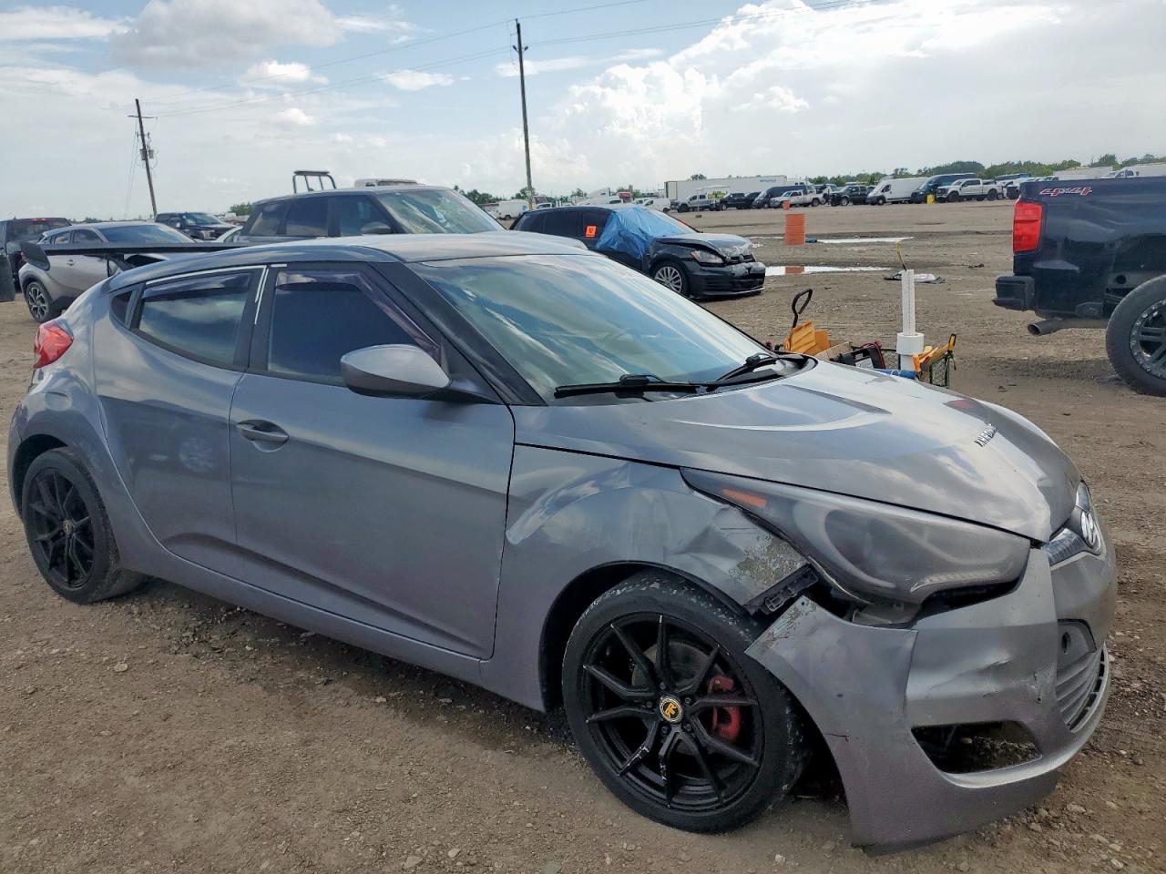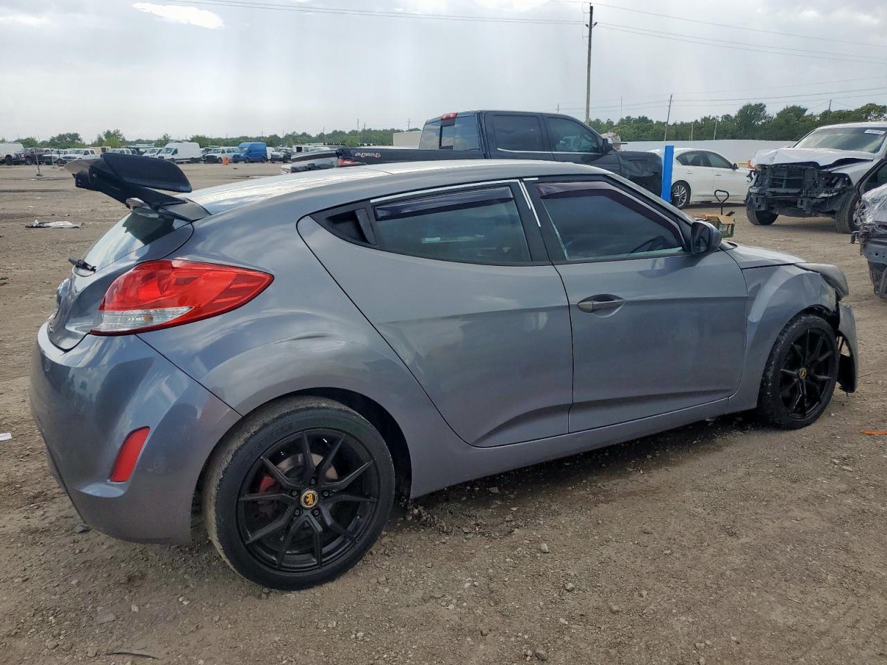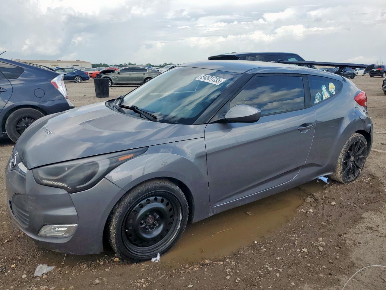 FairThe 2017 Hyundai Veloster is a gray hatchback with notable damage. The front end shows significant damage, and the rear end has some issues as well. The car's wheels appear to be in acceptable condition despite the damage. While the glass appears intact, the lights show signs of damage. Interior condition appears good, with no airbag deployment. This vehicle is a Run & Drive Verified.