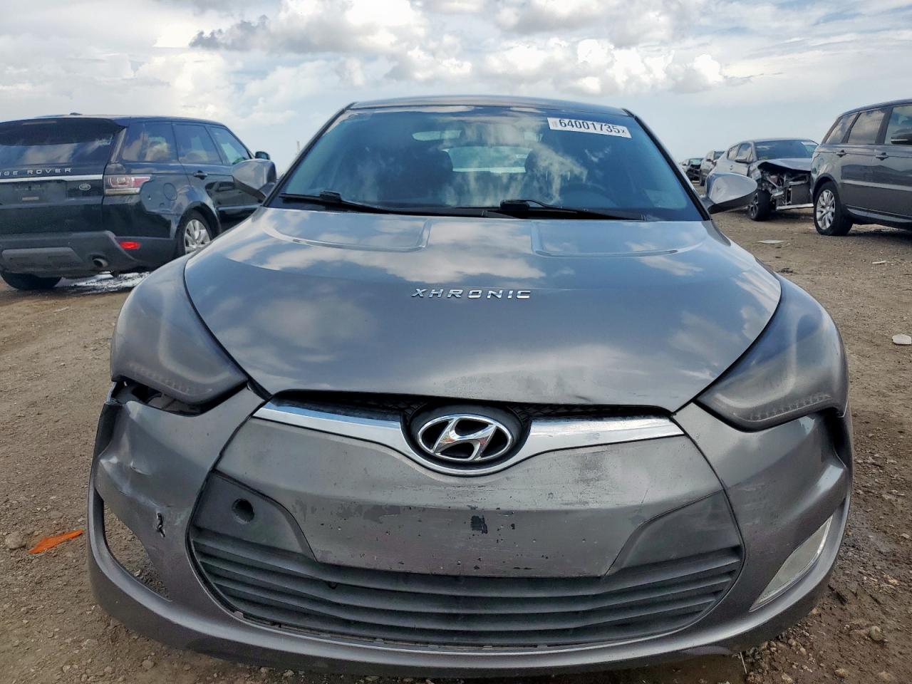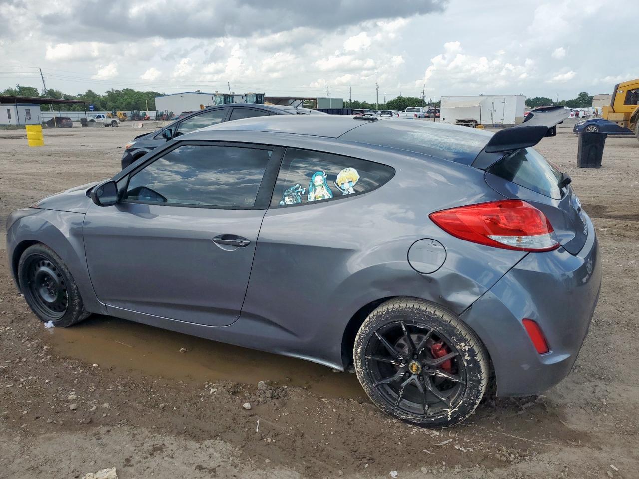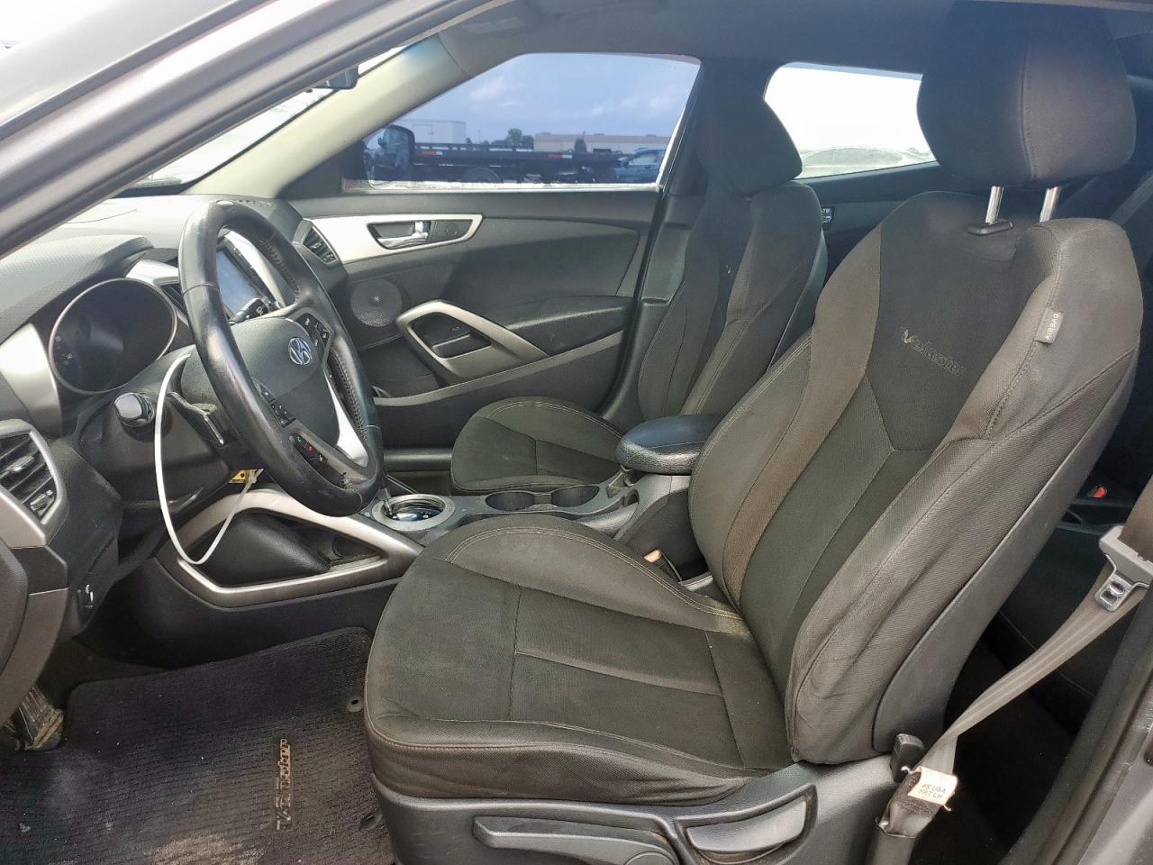 FairThe 2017 Hyundai Veloster is a gray hatchback with notable damage. The front end shows significant damage, and the rear end has some issues as well. The car's wheels appear to be in acceptable condition despite the damage. While the glass appears intact, the lights show signs of damage. Interior condition appears good, with no airbag deployment. This vehicle is a Run & Drive Verified.