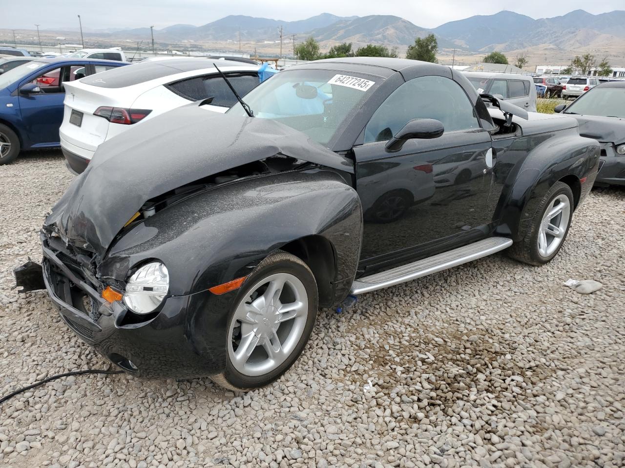FairThe 2004 CHEVROLET SSR is a unique retro-styled convertible pickup truck. This particular vehicle presents with significant front-end damage, classified as Body damage. The car is black, and it has a Vehicle Starts status. Inside, the interior shows minor wear and tear, but no major damage is apparent. The wheels appear to be intact and the lights are present but may be damaged. Glass condition is not specified, but overall, the vehicle requires considerable repair and is drivable.