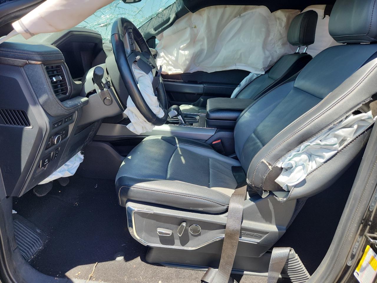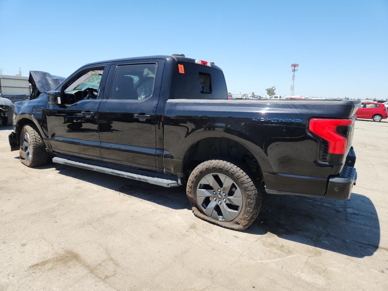 PoorThe 2022 Ford F-150 Lightning, appears to be in rough shape due to significant front-end damage. The vehicle's front end is heavily damaged, with the hood crumpled, and the front bumper and other front-end components severely compromised. The airbags have been deployed. The wheels show visible damage. The interior appears to have suffered from the impact, with deployed airbags and damage to the dashboard and windshield. The vehicle is not drivable and requires considerable repair. It is a black, electric pickup truck.