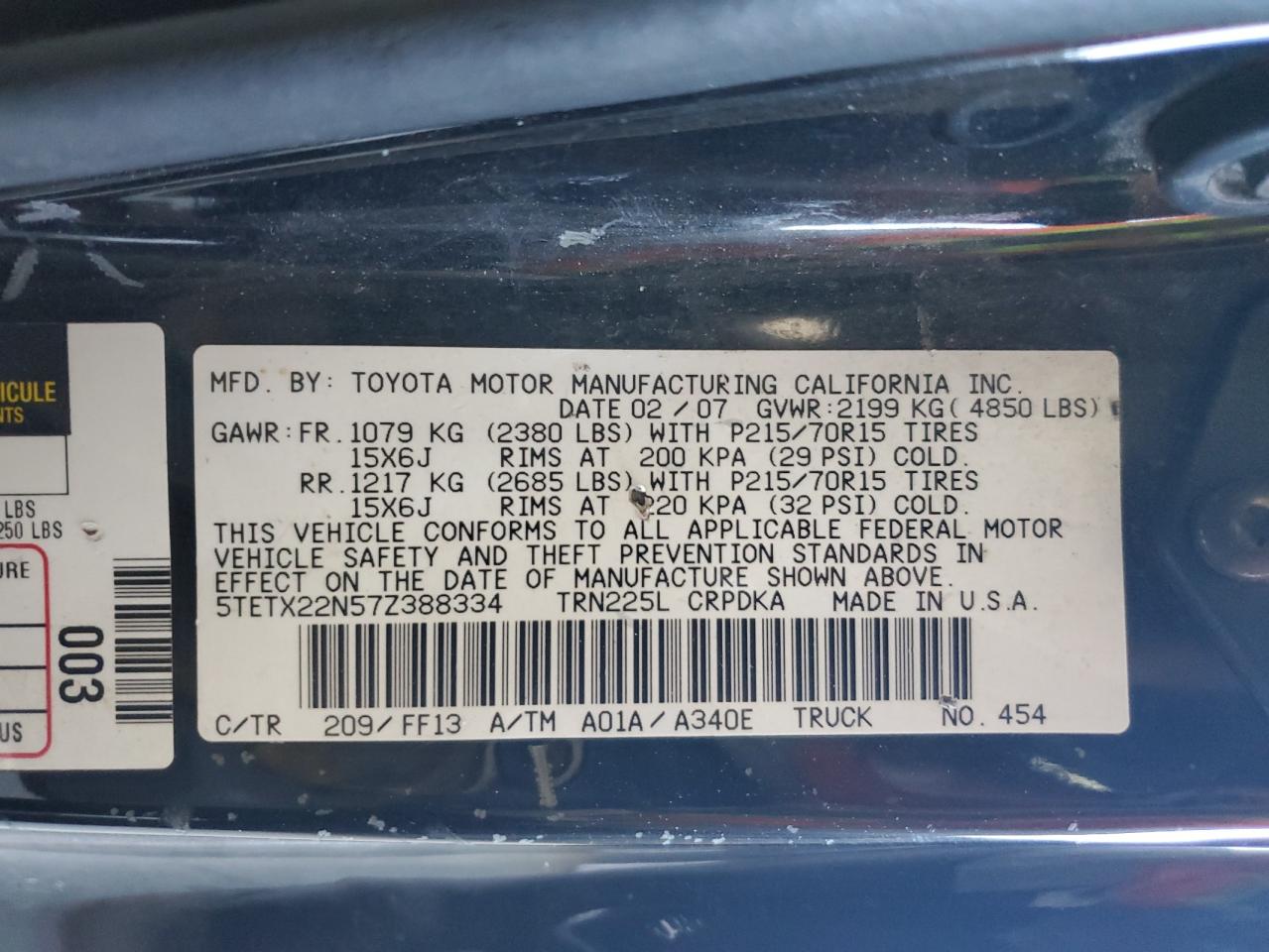 FairThe 2007 Toyota Tacoma in black shows significant damage. Primary damage is in the FRONT END, with secondary damage on the SIDE. Vehicle starts. The front end has extensive damage, with the bumper, grille, and possibly the hood severely affected. The side shows dents and possible panel damage. The wheels appear to be in decent condition. The lights and glasses show visible damage. Inside, the interior appears to be in generally good condition, with normal wear and tear. The airbags are not explicitly mentioned, but the extent of the front end damage suggests they may have deployed. Overall, the vehicle requires considerable repair and is likely not drivable.
