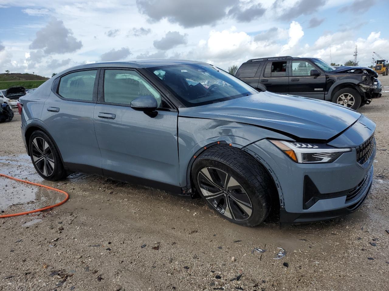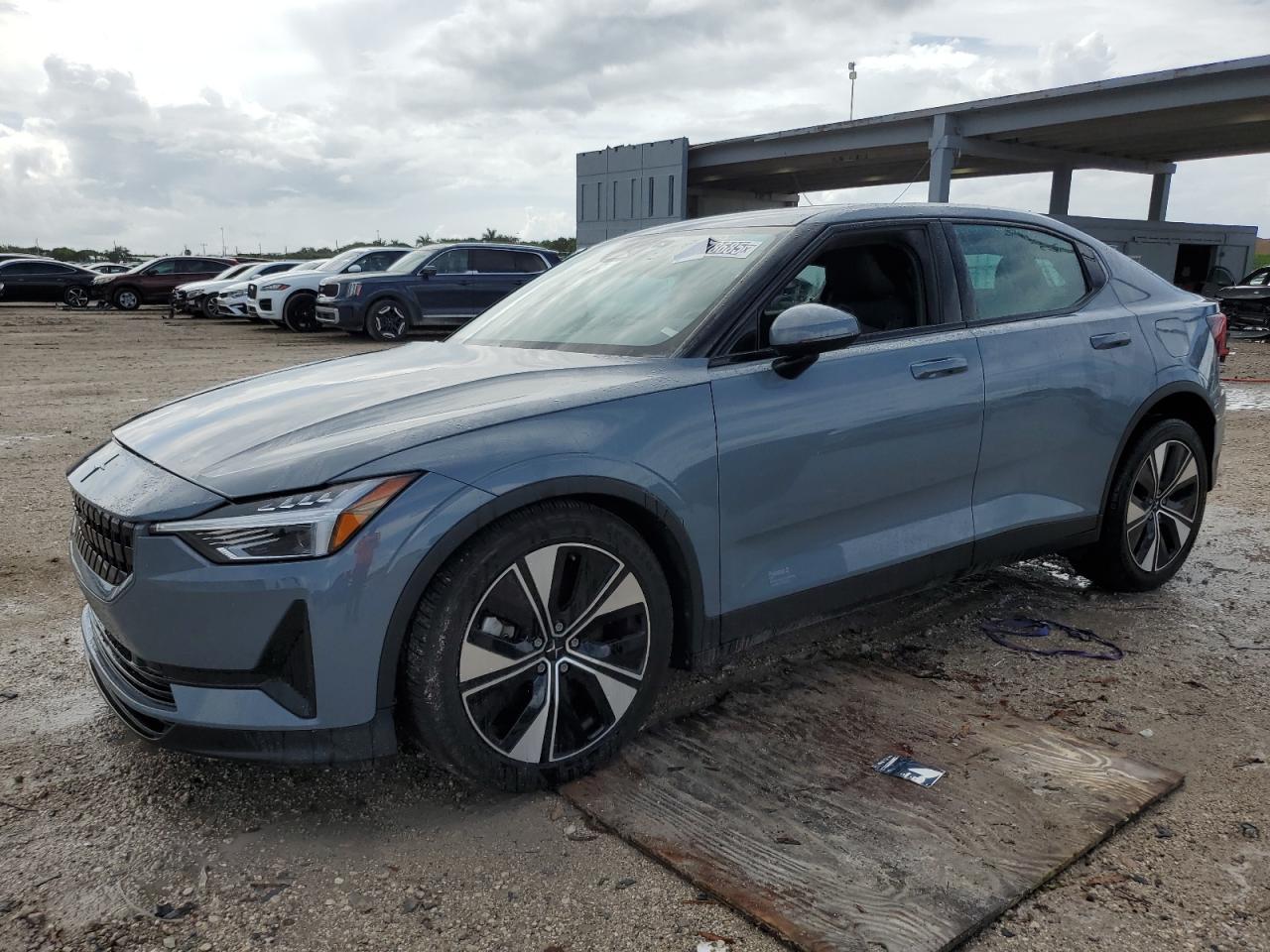 FairThe 2023 Polestar 2 has sustained front-end damage. The blue car exhibits notable damage to the front, with the front end heavily impacted. The wheels appear intact, while the lights and glasses show no signs of damage. The interior seems to be in a decent condition. The battery level is at 60%.