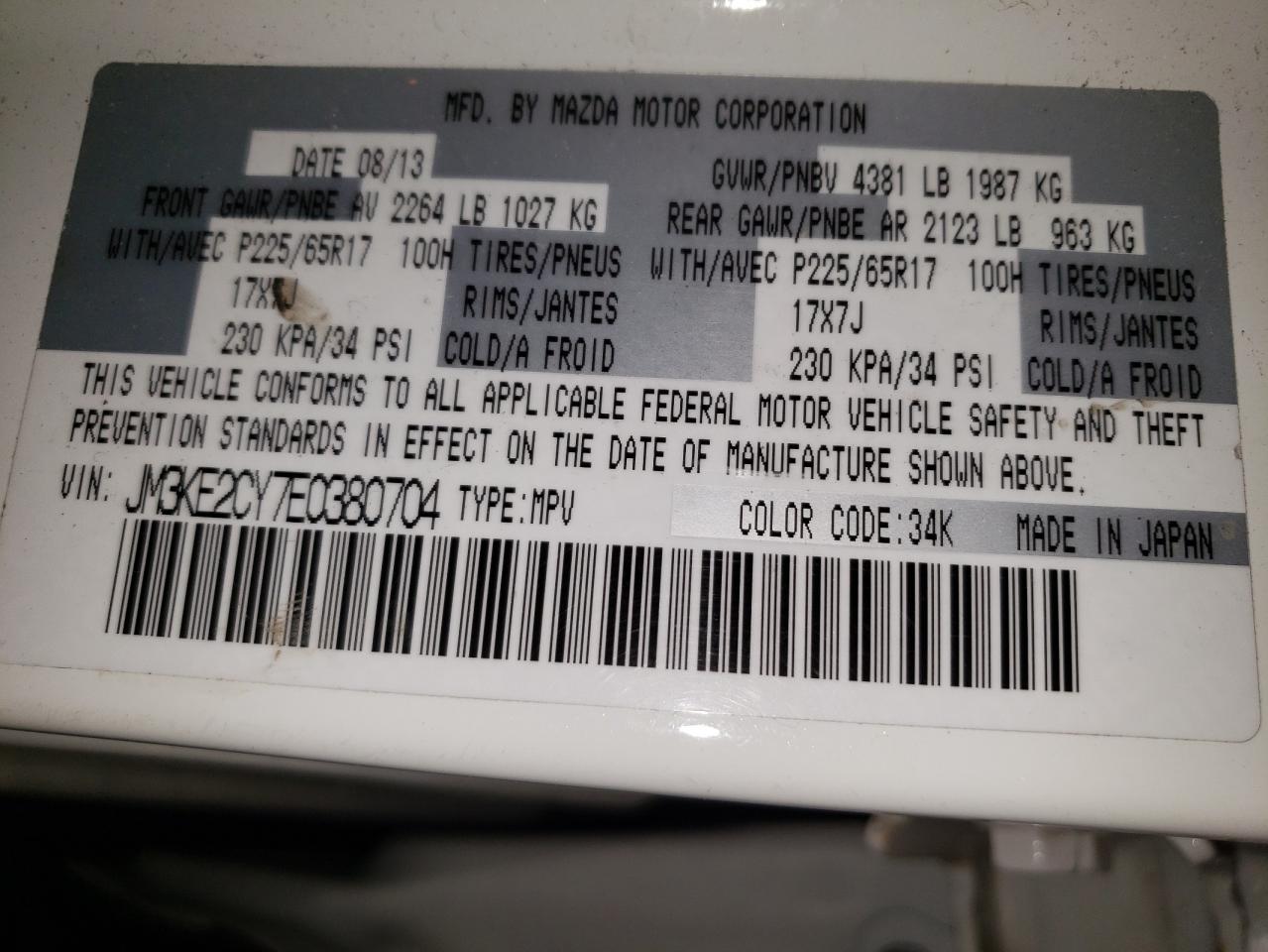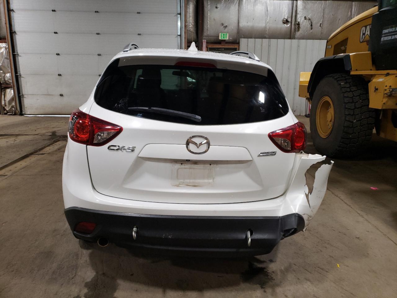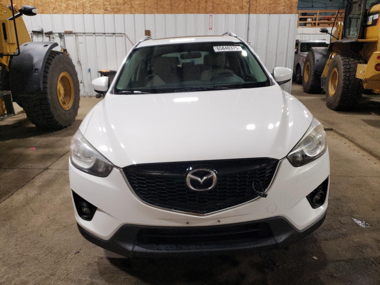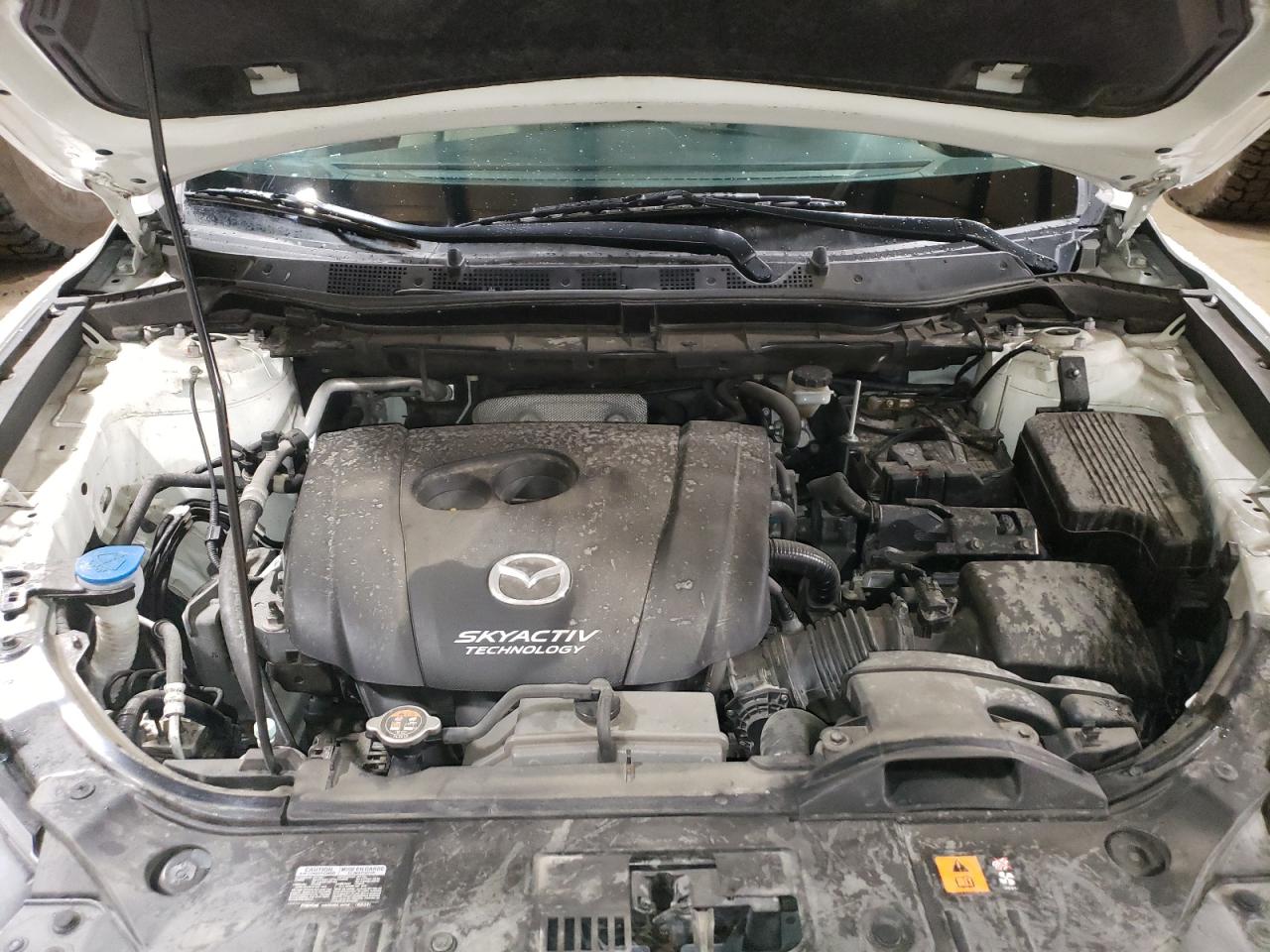 FairThis is a 2014 Mazda CX-5 Touring with significant rear-end damage. The primary damage is to the rear body panels. The car's color is white. The vehicle starts. The interior shows normal wear and tear. The vehicle's condition is drivable.