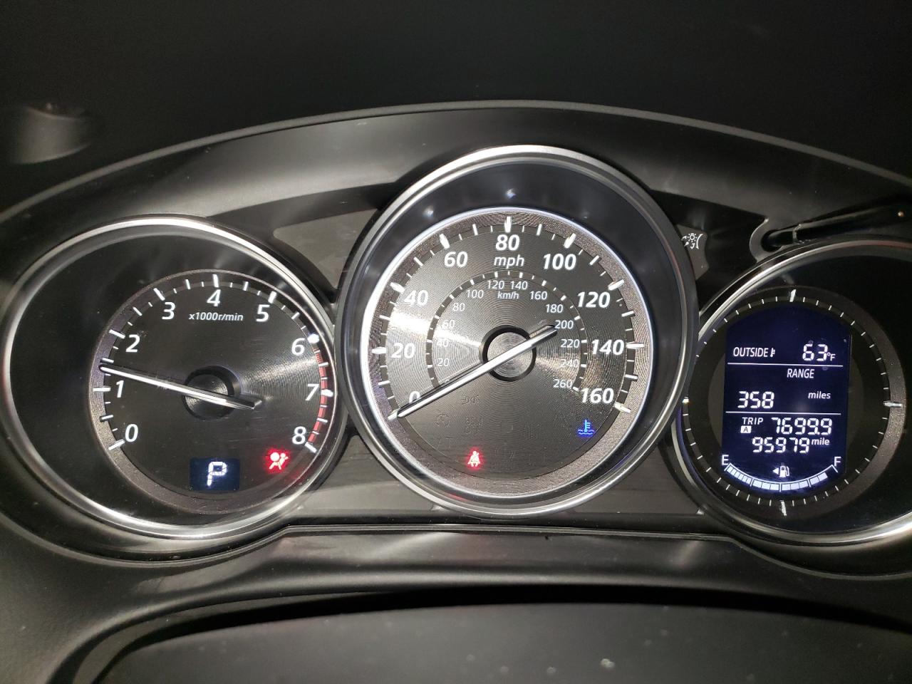 The Mazda CX-5 has sustained significant damage to its rear end, including body panel damage. The vehicle's exterior has moderate damage, and the interior is in good condition. The wheels and lights appear to be intact. There is a potential need for repairs due to the rear-end collision. The airbags were not deployed.