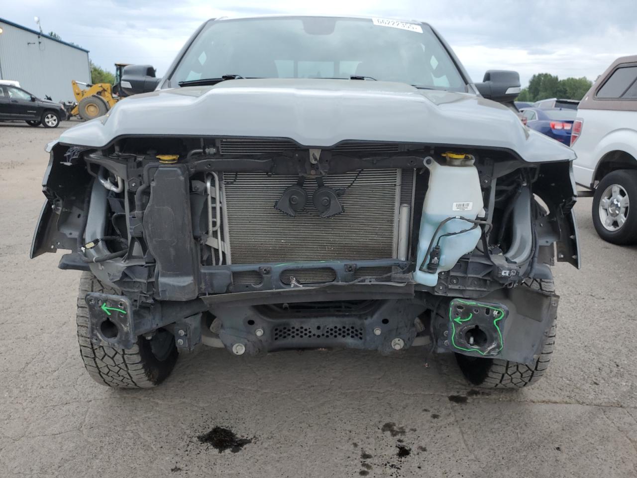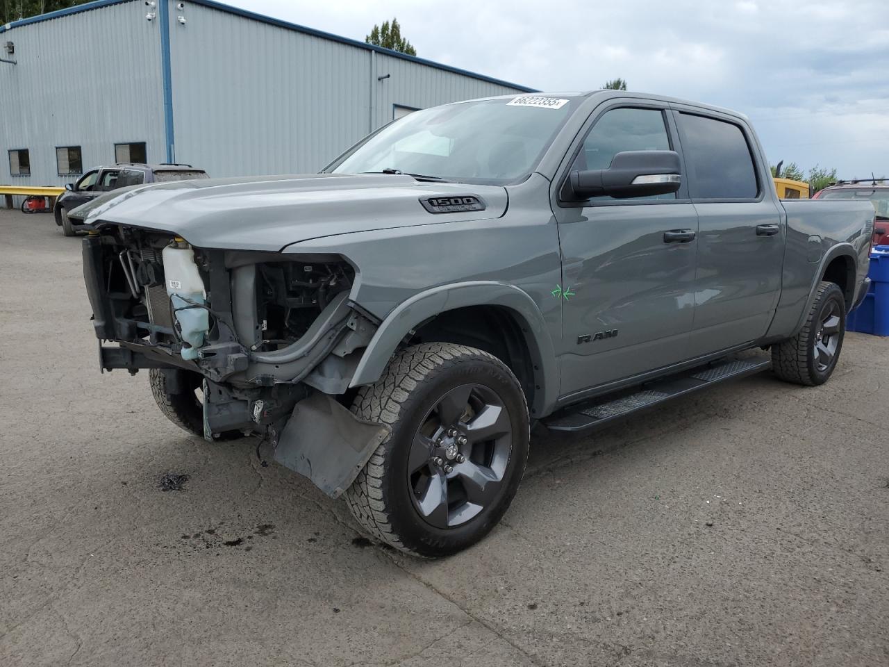 FairThis is a 2020 RAM 1500 BIG H, painted in gray, with a Run & Drive Verified start code. The vehicle has sustained frame and front-end damage. The exterior condition is rated as Fair, the interior is Good, and the overall state of the vehicle is also Fair. The vehicle has some visible damage on exterior and interior.