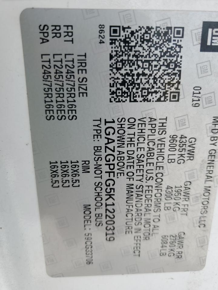 This is a CHEVROLET EXPRESS G3 2019. The vehicle's primary damage includes MINOR DENT/SCRATCHES, with no secondary damage noted. The car is white, and its start code is Run & Drive Verified.