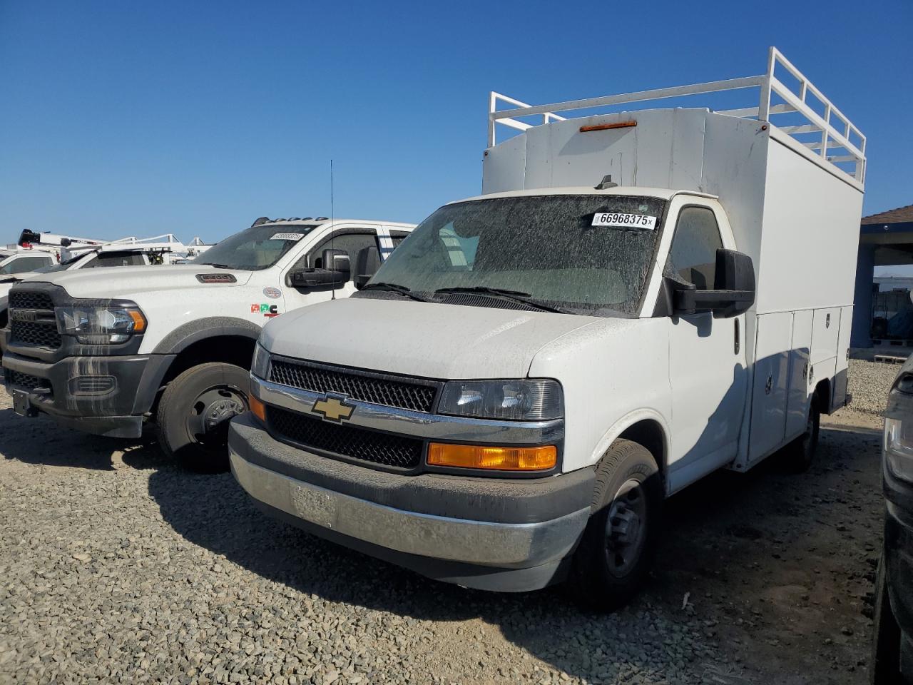 GoodThe white CHEVROLET EXPRESS G3 2022 displays damage primarily on the side panels, classified as Body damage. The interior shows wear consistent with its age and mileage. All lights and glasses appear intact, and the wheels are in good condition. The vehicle is drivable, and there is no indication of airbag deployment. The car is in generally good condition, with cosmetic and body imperfections.