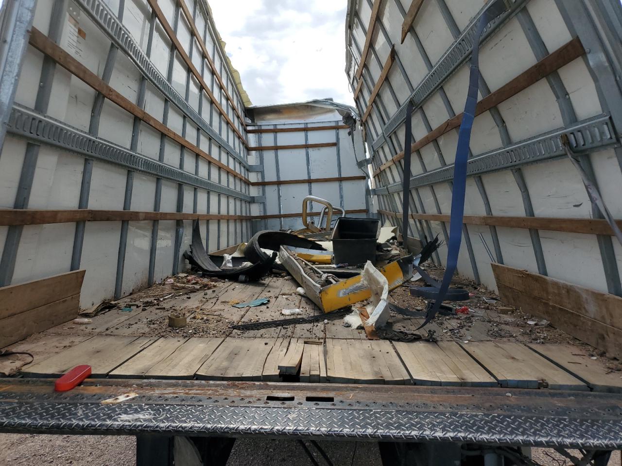 Rear end and side impact damage. Crushed cargo area, damage to the exterior panels, and possibly frame damage. Interior damage is also present, with possible airbag deployment.