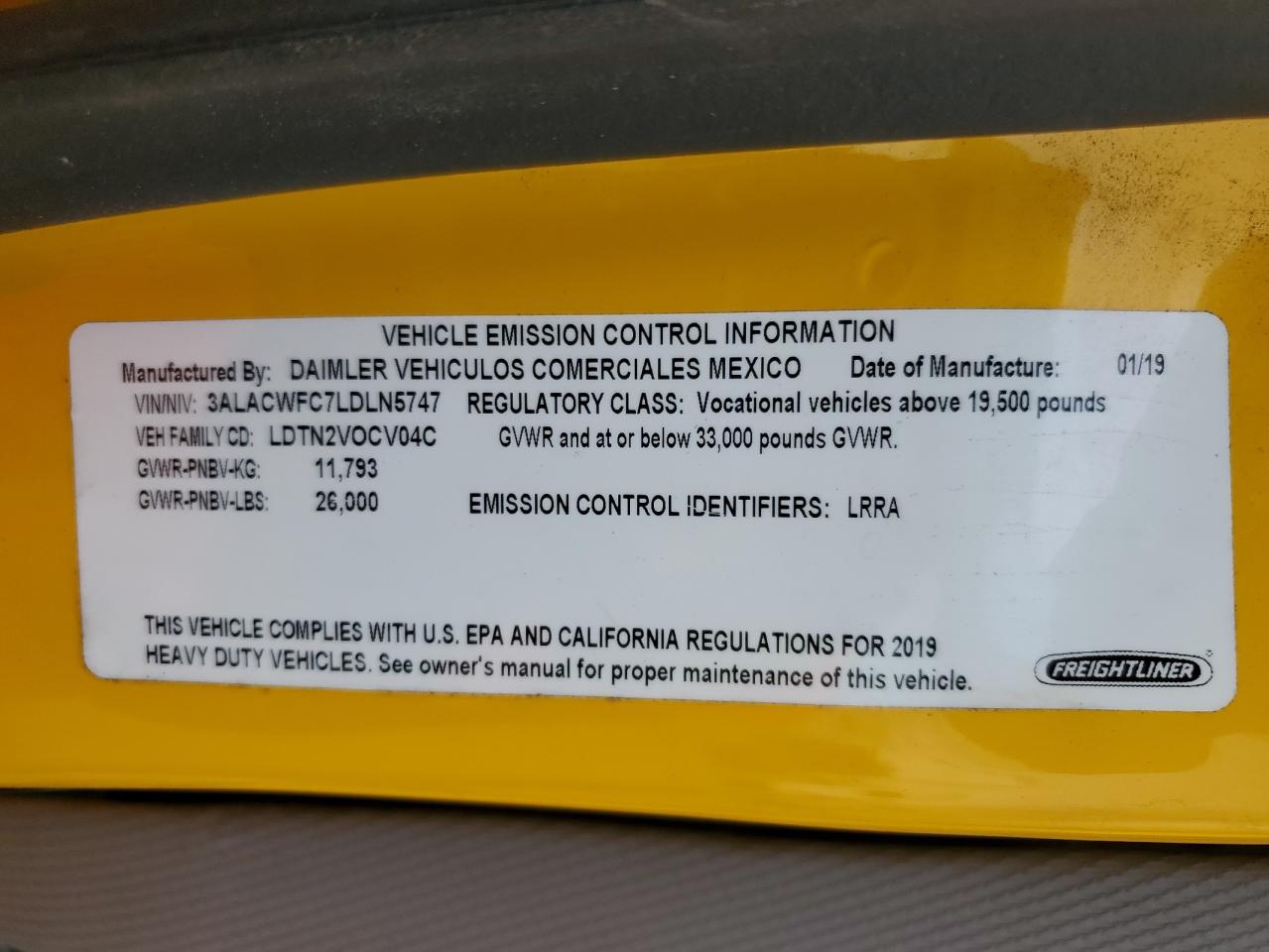 FairThe FREIGHTLINER M2 106 MED 2020, colored yellow, shows significant damage. The primary damage is to the rear end, with secondary damage to the side. The vehicle's overall condition is poor, with considerable damage visible. The interior condition is poor as well, with visible damage. The vehicle's lights, glasses are damaged. The frame might be affected as well. This truck requires extensive repairs and is likely not drivable in its current state.