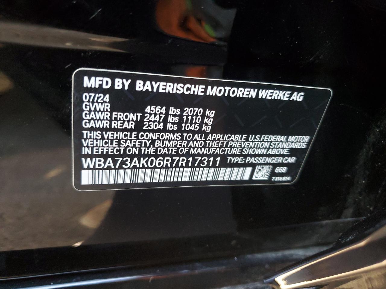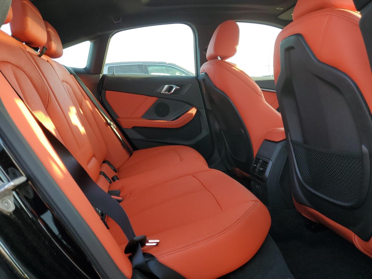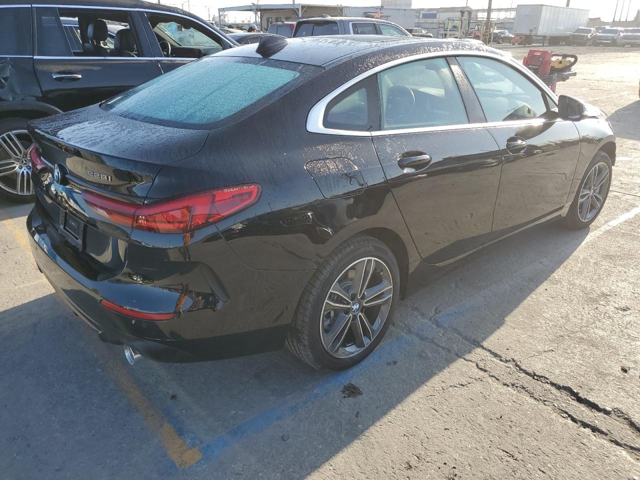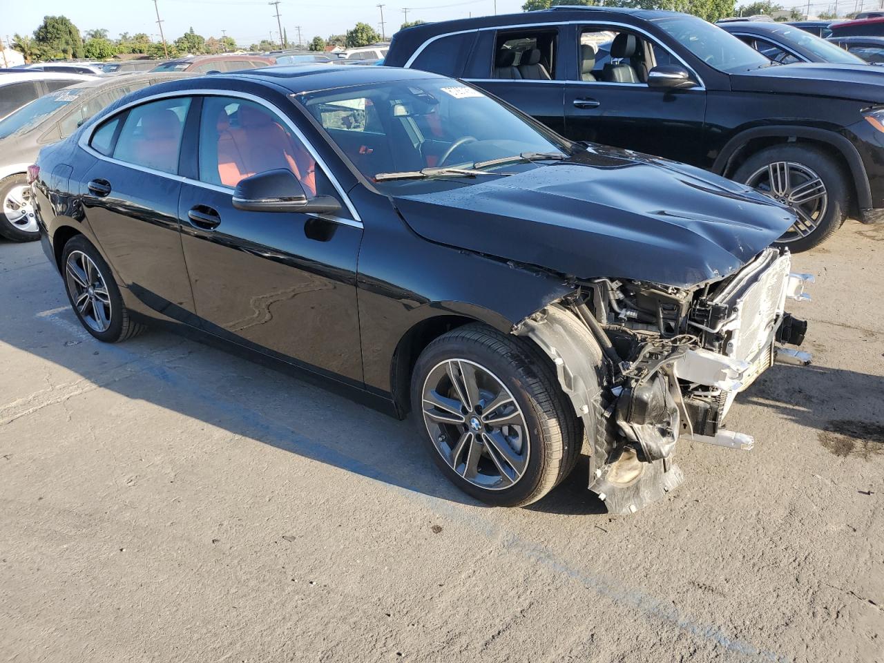 Fair2024 BMW 228XI. The car has suffered front-end damage, including the bumper, hood, and potential structural components. The car is black, featuring a Run & Drive Verified start code, indicating it is drivable. The interior appears to be in relatively good condition with orange leather seats. The wheels and glasses seem intact, with no obvious damage.