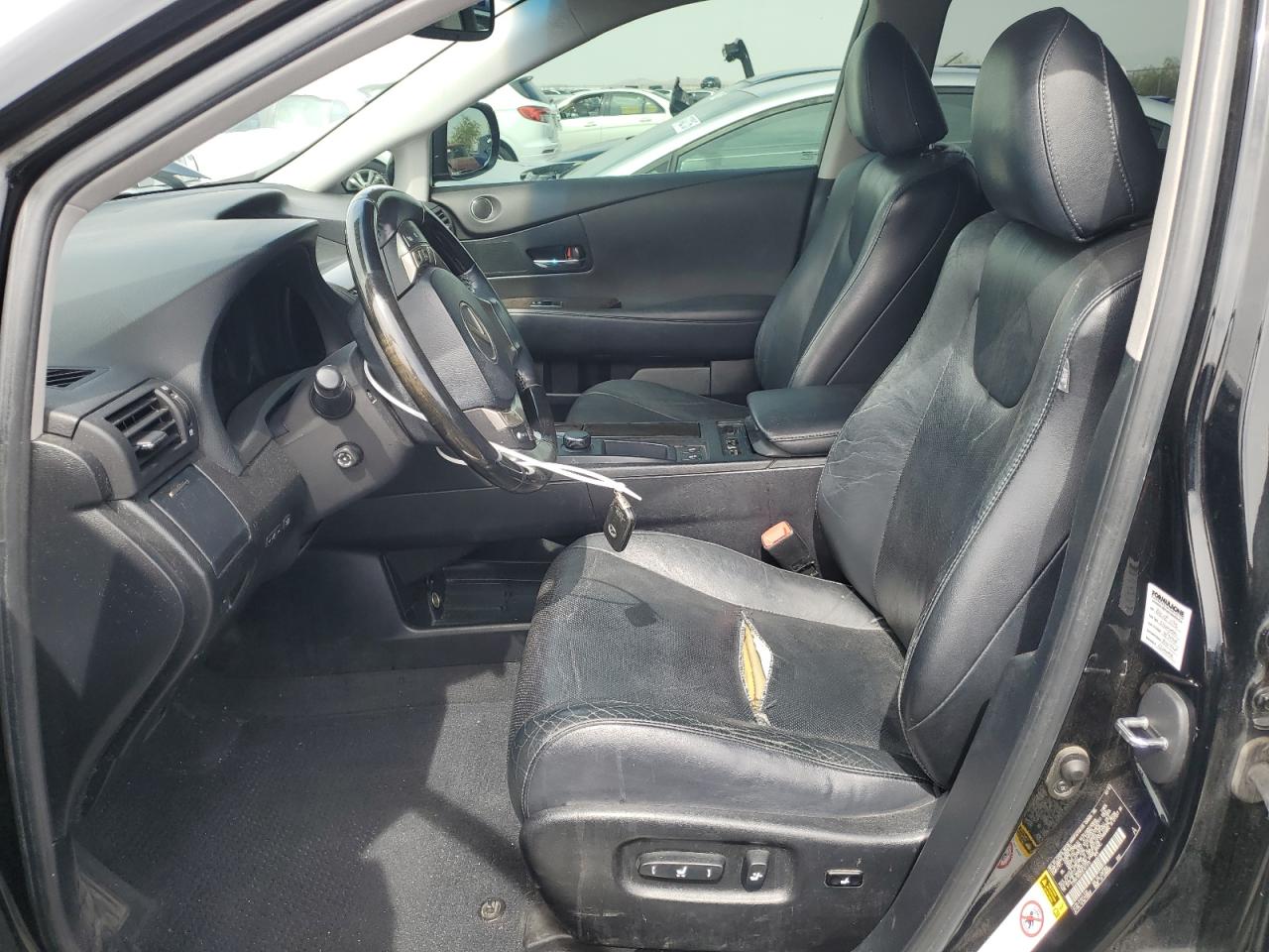 FairThis 2013 Lexus RX 350 Base, with a black exterior, has sustained front-end damage, making it a potential project car. The vehicle is noted as Run & Drive Verified. The damage appears to be concentrated on the front end, with no secondary damage reported. The interior shows signs of wear, as one of the seats looks torn, but it's generally in decent condition. The car is drivable but requires repairs to the front.